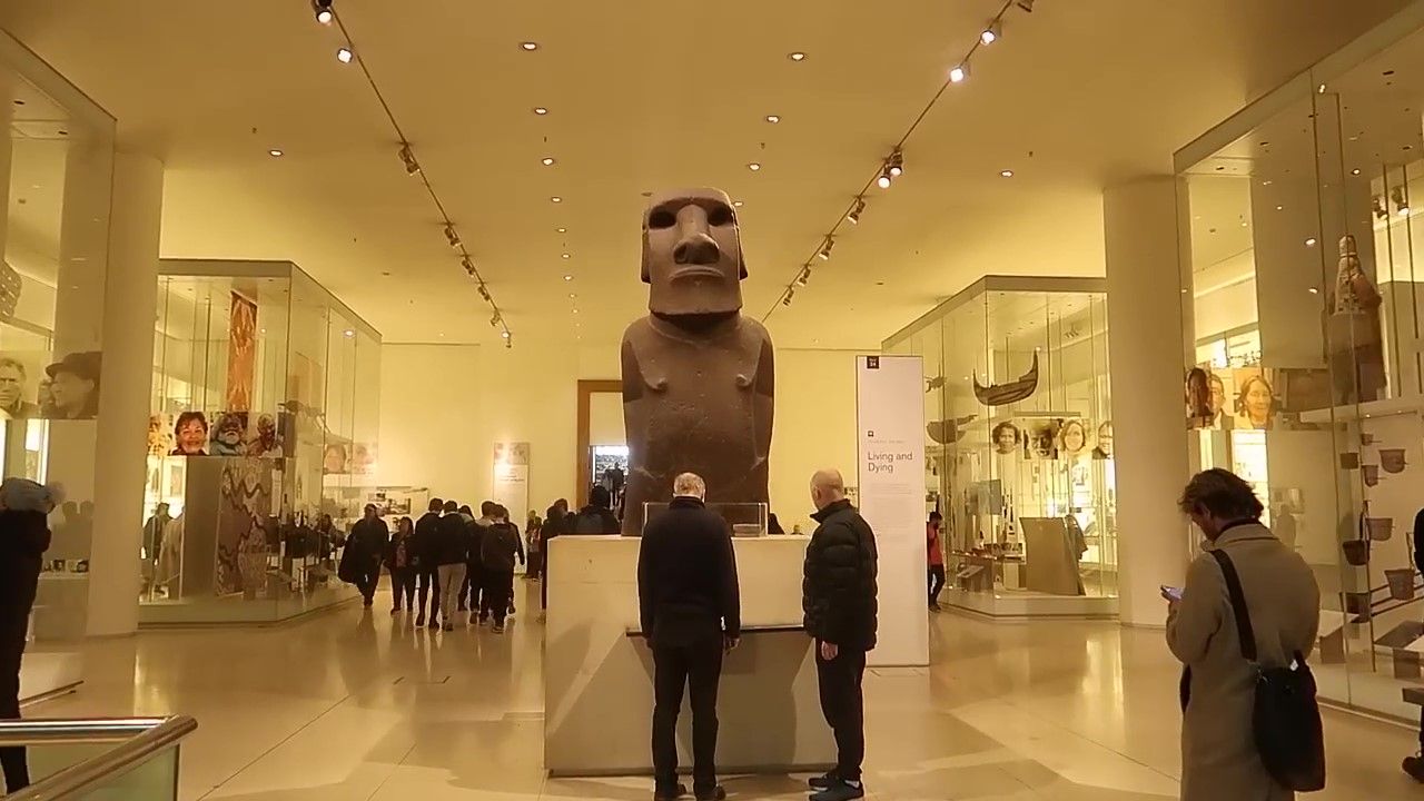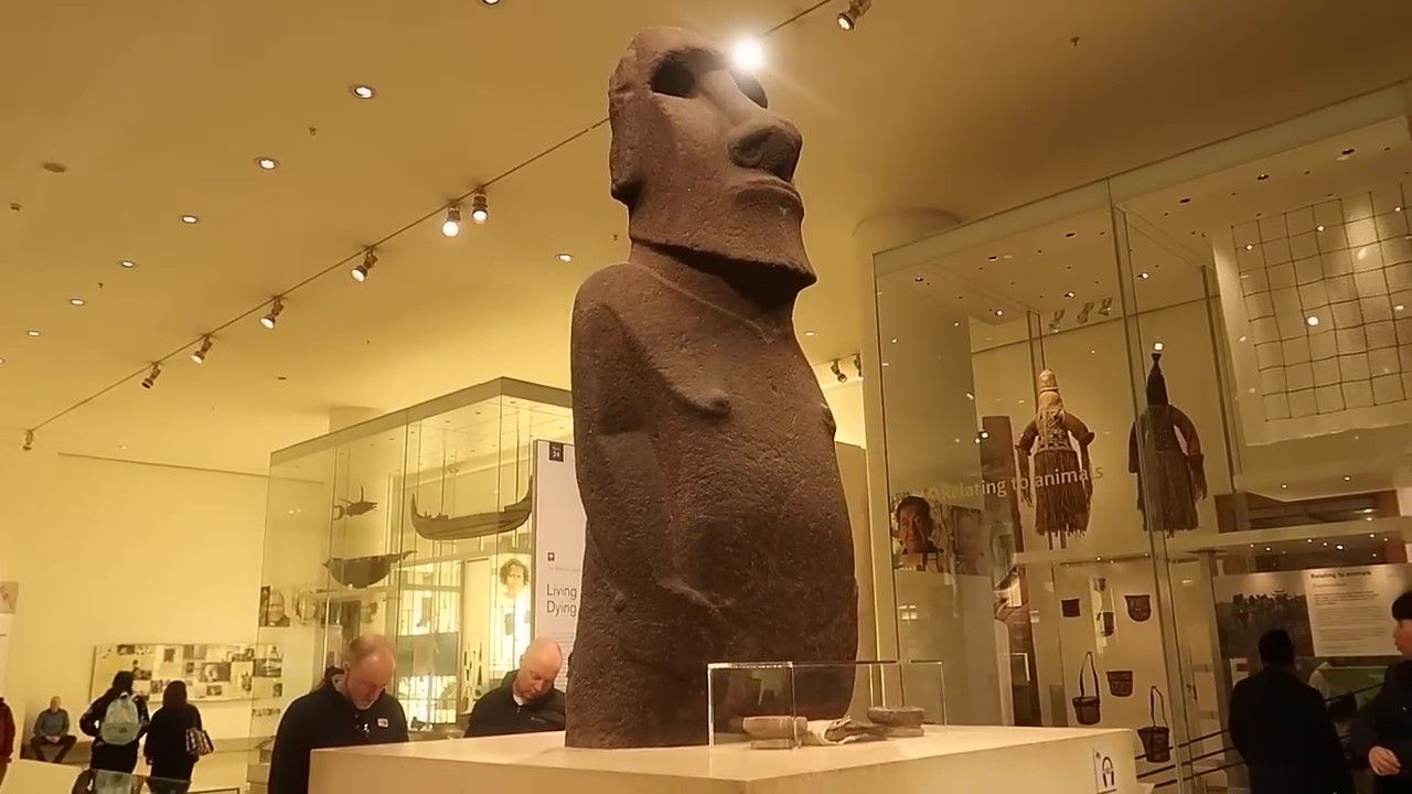 Another great piece in the museum is a sculpture from the Pacific Island. It's called "Hoa Hakananai" which can be translated as "Lost Friend." Sometimes this sculpture may appear larger or smaller in photos. Interestingly the head of the sculpture is visible while the interior is buried underground.