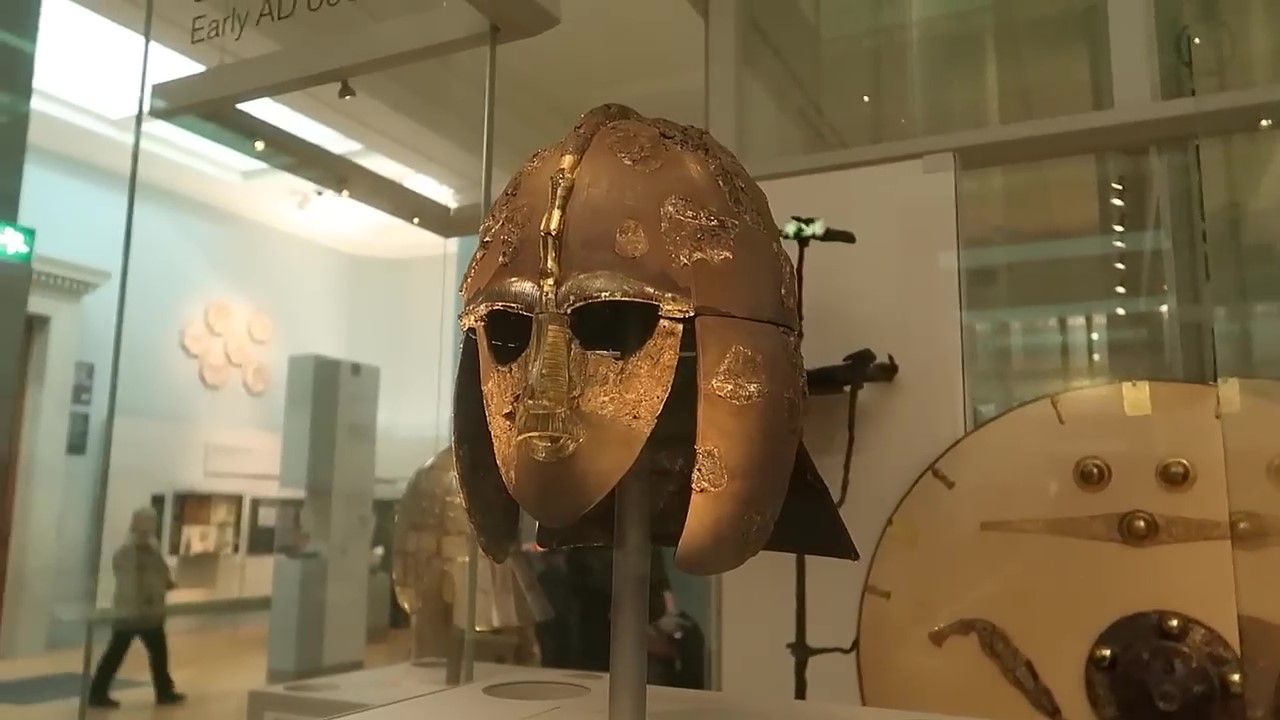 I stood before a helmet believed to belong to the Anglo-Saxon king Raedwald probably. this helmet was found in the Sutton Hoo excavations.