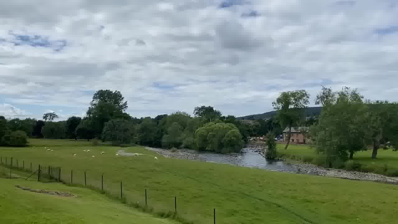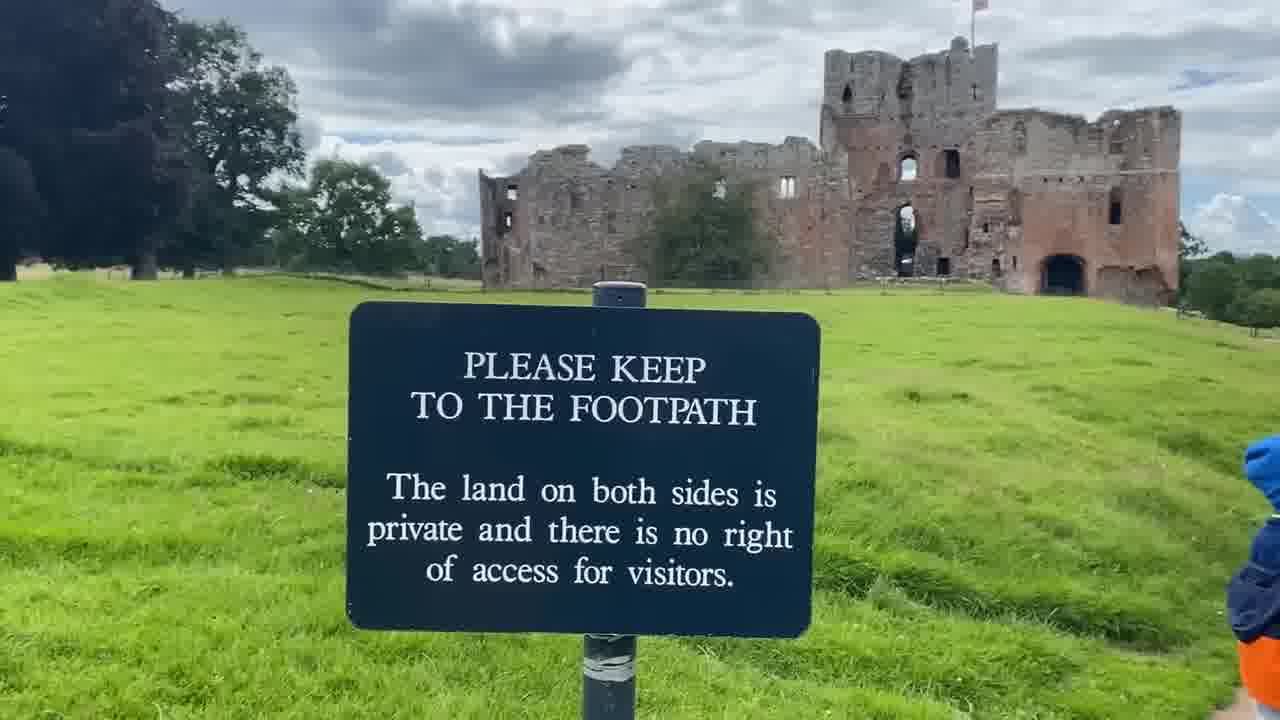 Hello. I wanted to greet you with the splendid view of Brougham Castle today. This place bears the emblem of English heritage. This is the symbol of an organization that values historic buildings. As indicated on the sign we need to proceed along the footpath.Since it's not possible to pass through the private property onboth sides.