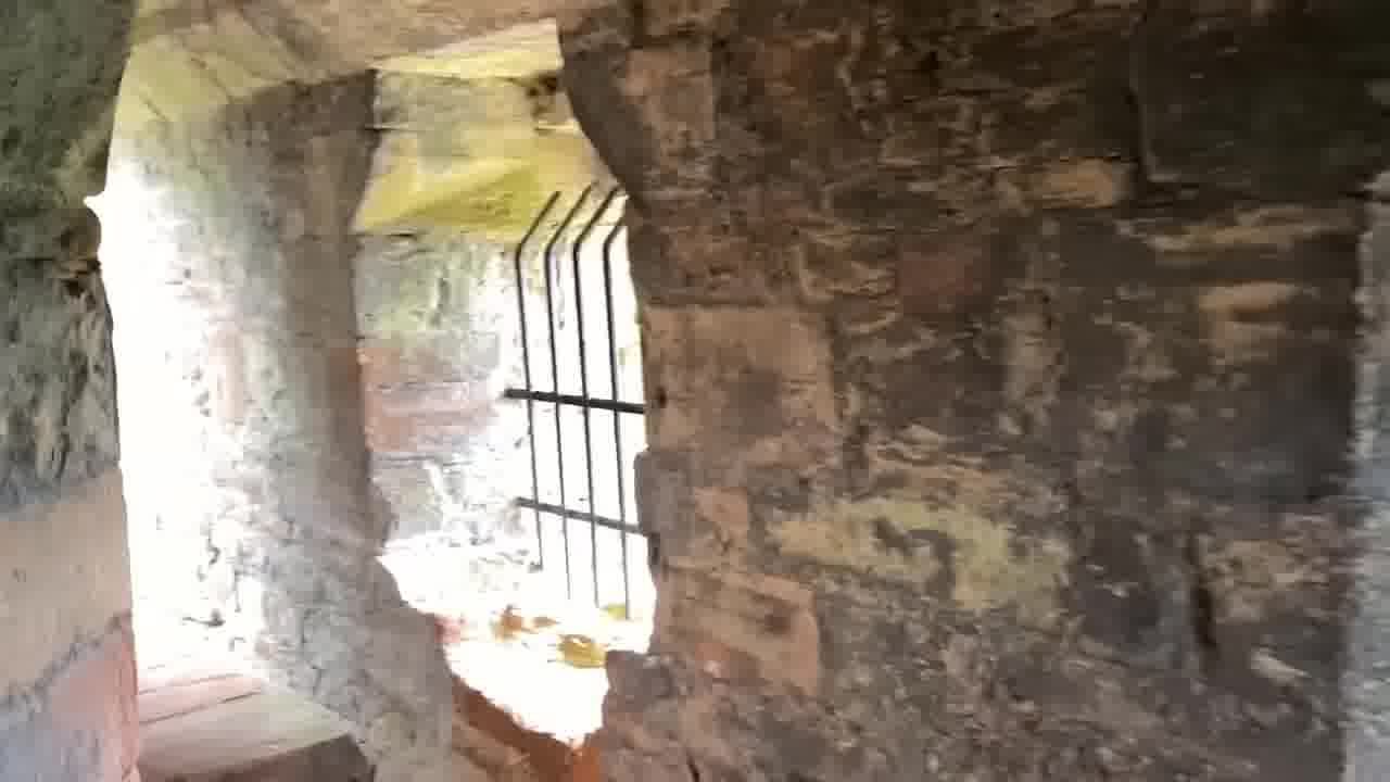 We looked upstairs and glanced at the second floor. The windows were designed particularly for defensive purposes. As you can see, today this building is in a ruined state. The reason for this is not due to destruction by someone. It's simply because it was abandoned and deteriorated over time.