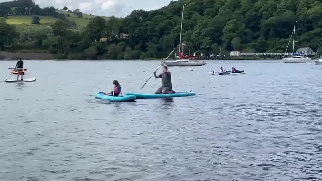 Perhaps next time we'll have the opportunity to take a cruise on these ferries on the lake. I'm watching a family. They're learning how to paddleboard. You can stand on this board and after a while, you can sit if you want. They come in different sizes and materials. Some of them are really large, accommodating the whole family,but these are massive boards. There are also smaller ones available. Lately it's been on my mind, it seems like I might need one too. Of course it's not like swimming in the sea. Maybe there's a stream nearby, there are these kinds of streams everywhere. The current isn't strong, and there's no tide. This is precisely where you find narrow, small, winding and beautiful riverbanks. There are birds and nature there. You can sit and peacefully enjoy.