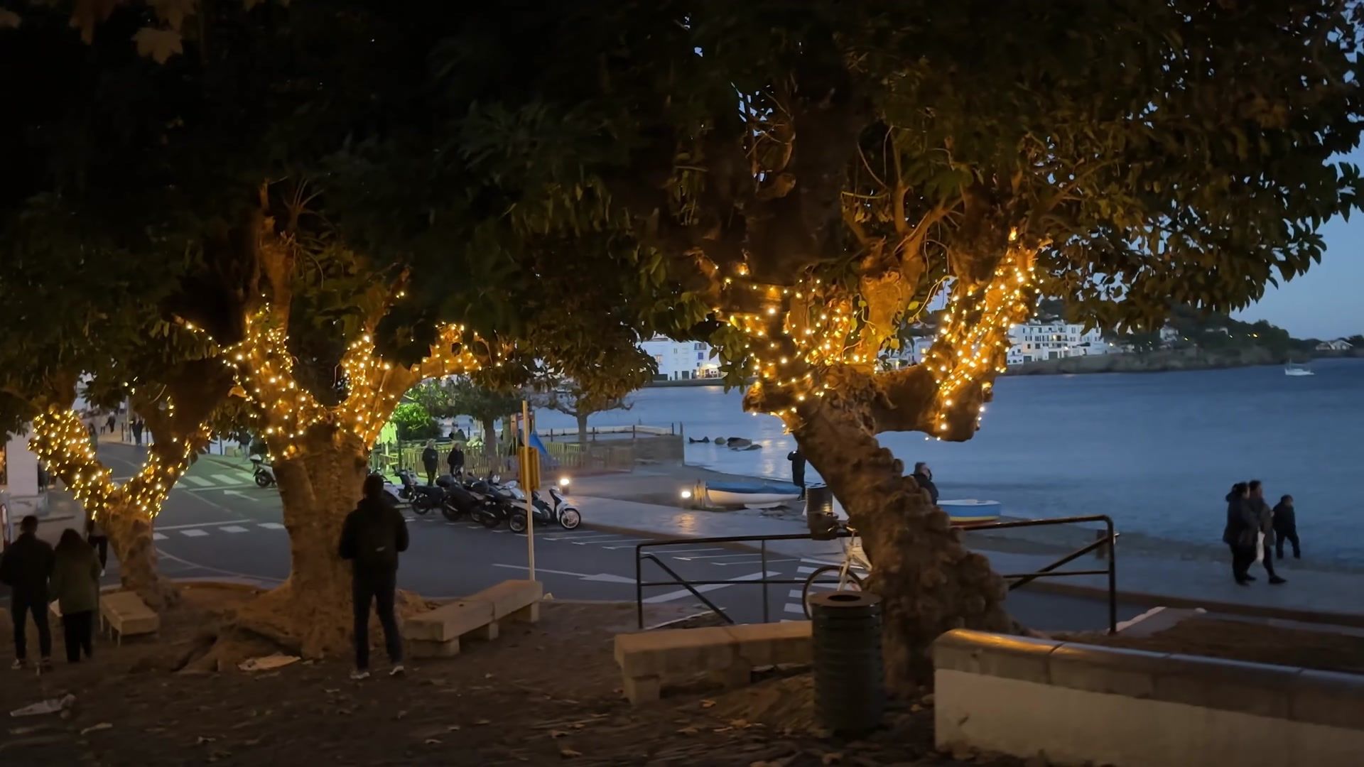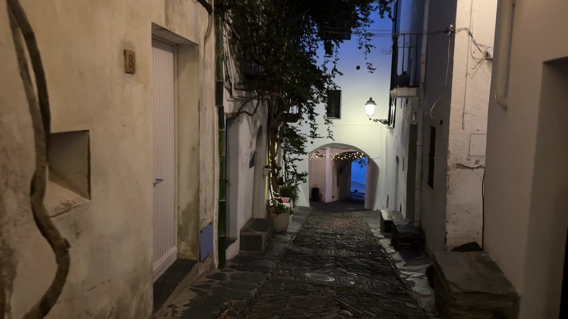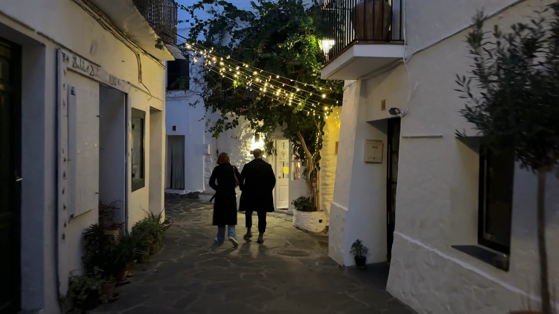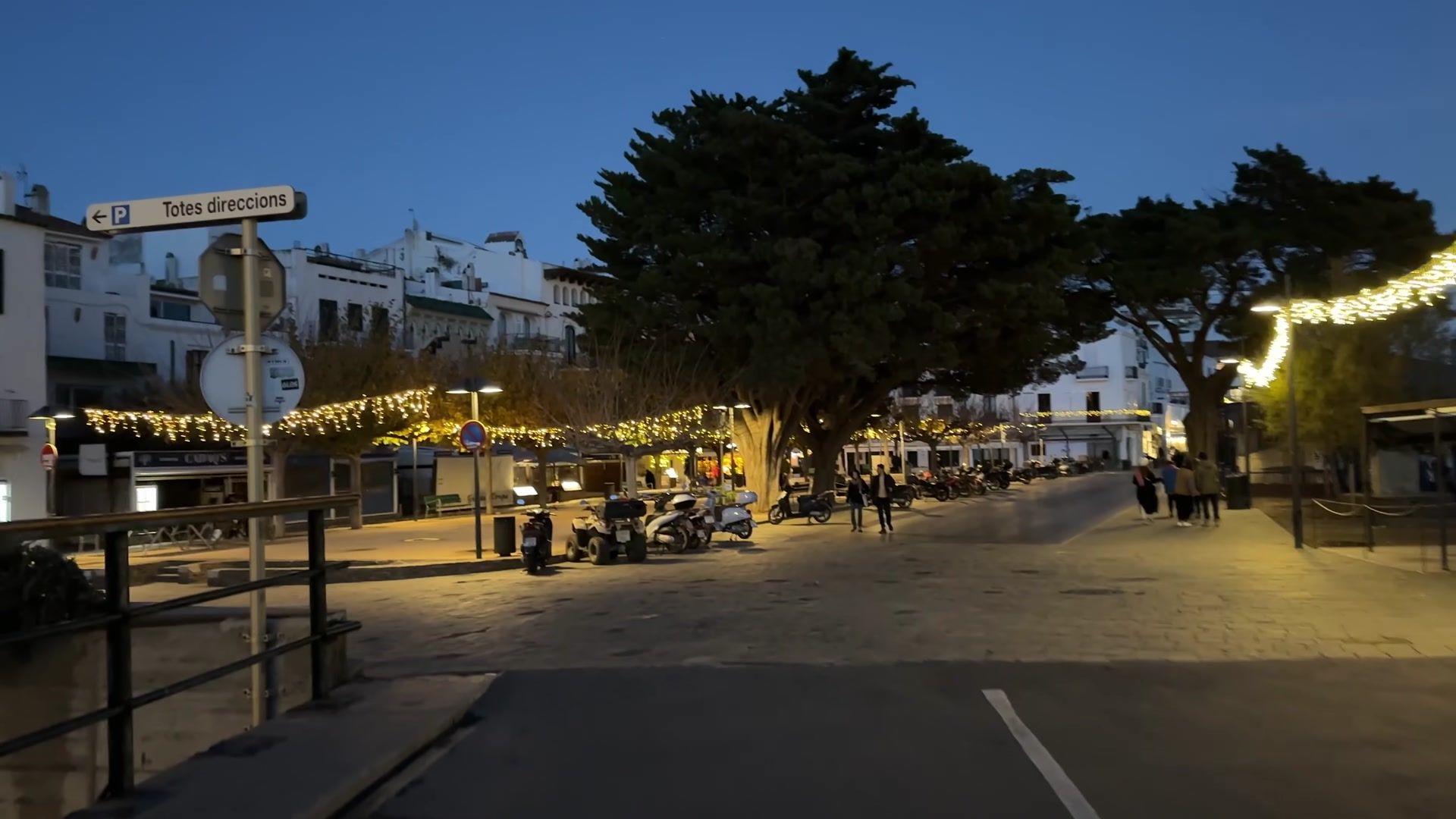 We left the restaurant feeling full and satisfied. It was a nice restaurant located next to the Cap de Creus lighthouse. The wind was so strong that I had to hold my phone with both hands to keep it from flying away. After visiting Cap de Creus, we started to explore the city of Cadaqués. It was December, around 5:00 pm and it was getting dark. The streetlights were starting to come on. We walked around for about an hour.