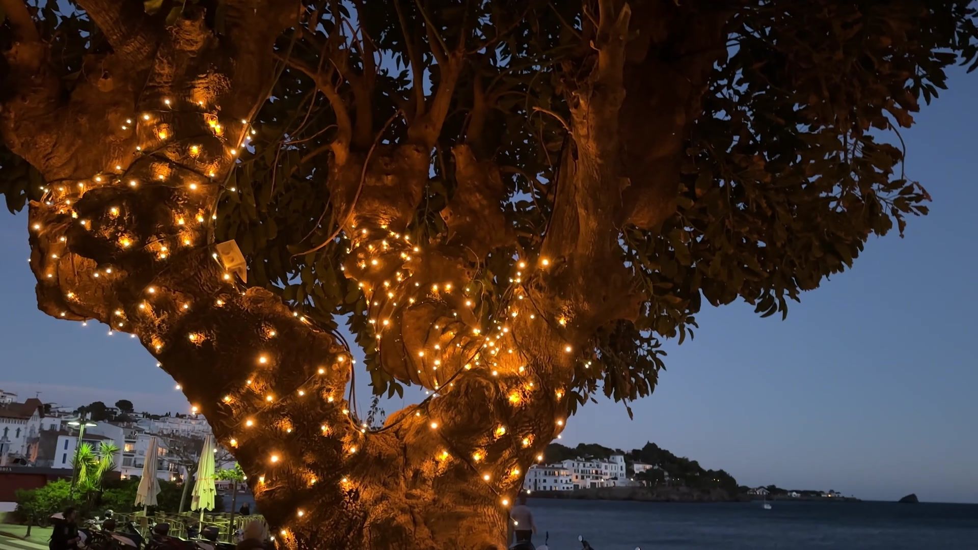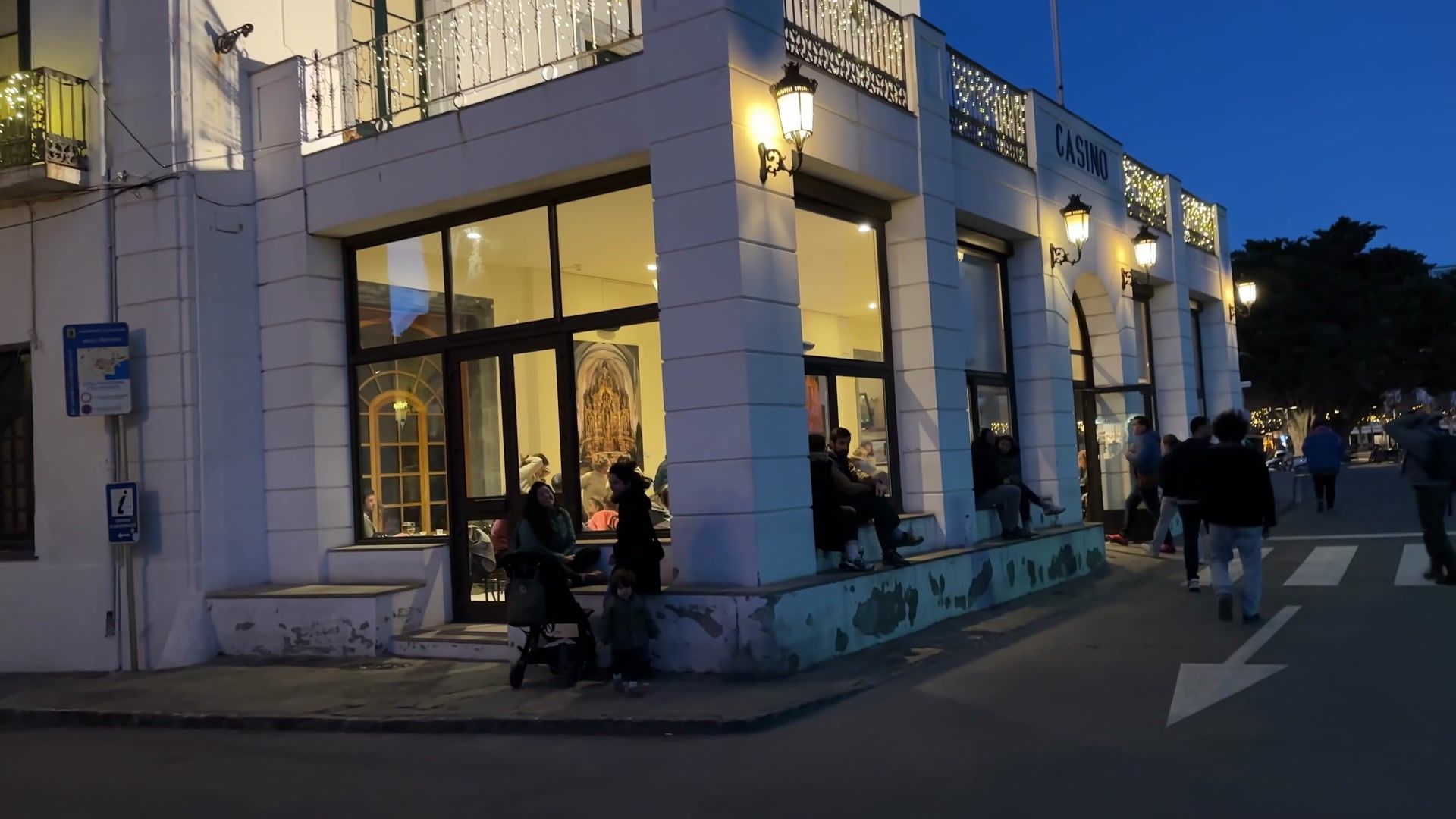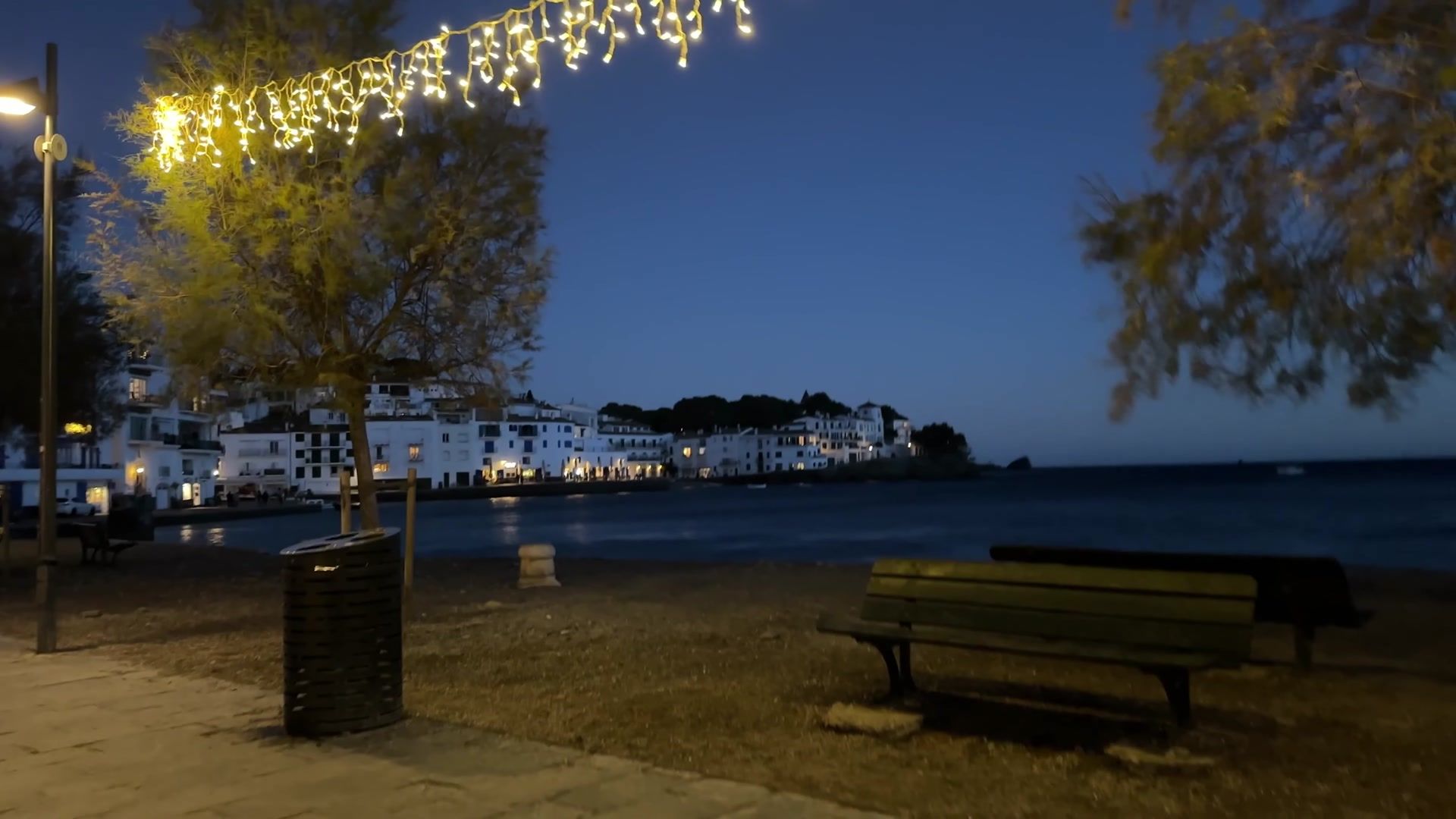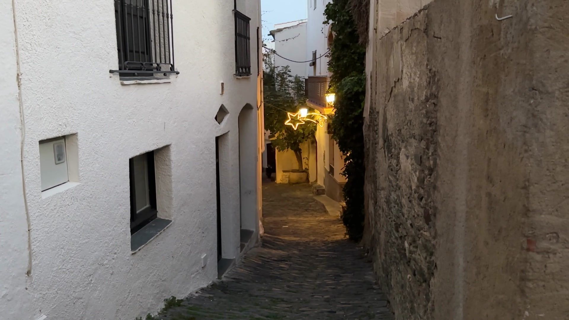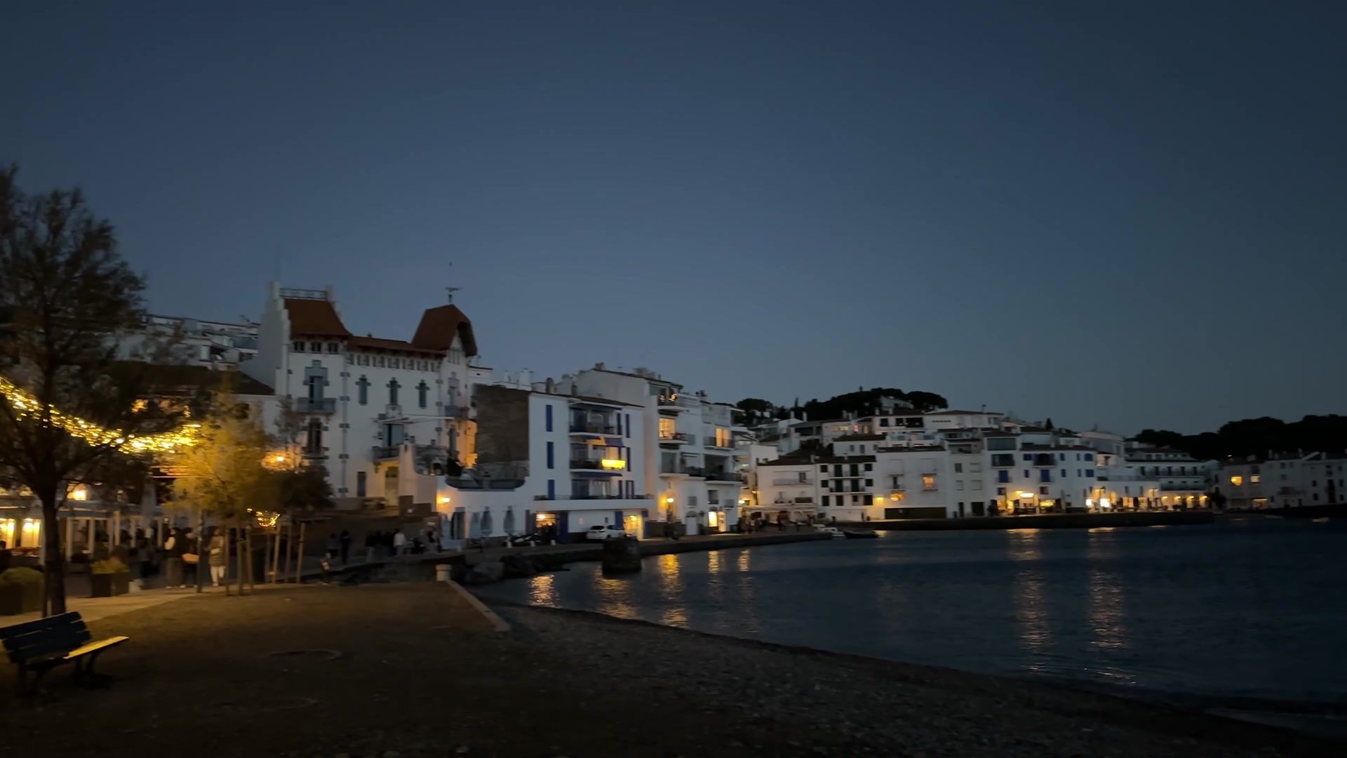 We left the restaurant feeling full and satisfied. It was a nice restaurant located next to the Cap de Creus lighthouse. The wind was so strong that I had to hold my phone with both hands to keep it from flying away. After visiting Cap de Creus, we started to explore the city of Cadaqués. It was December, around 5:00 pm and it was getting dark. The streetlights were starting to come on. We walked around for about an hour.