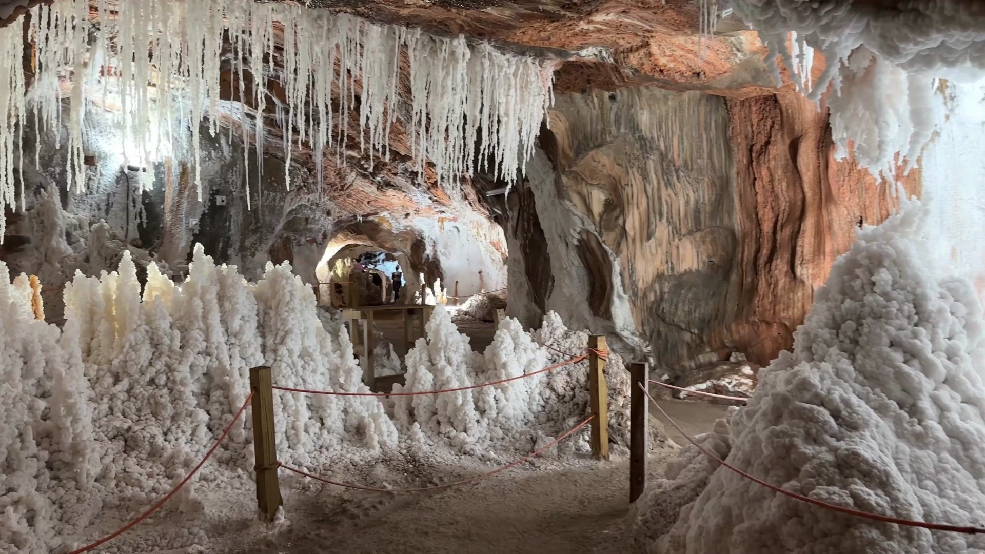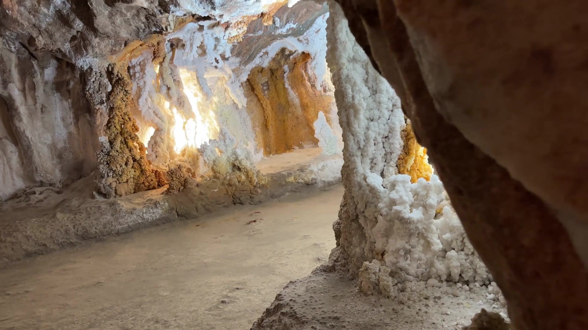 We put on our helmets and began to explore the cave. The interior was beautifully salty. Water droplets were dripping from above.