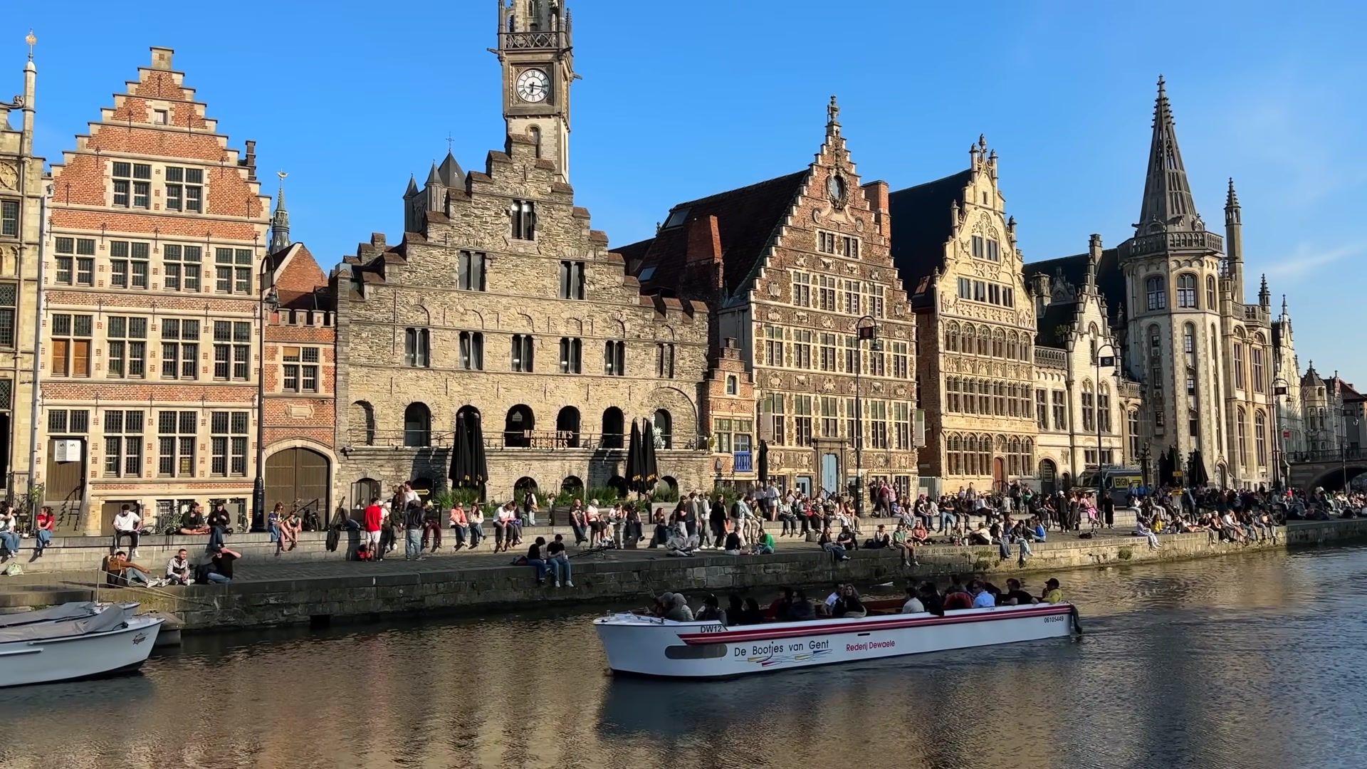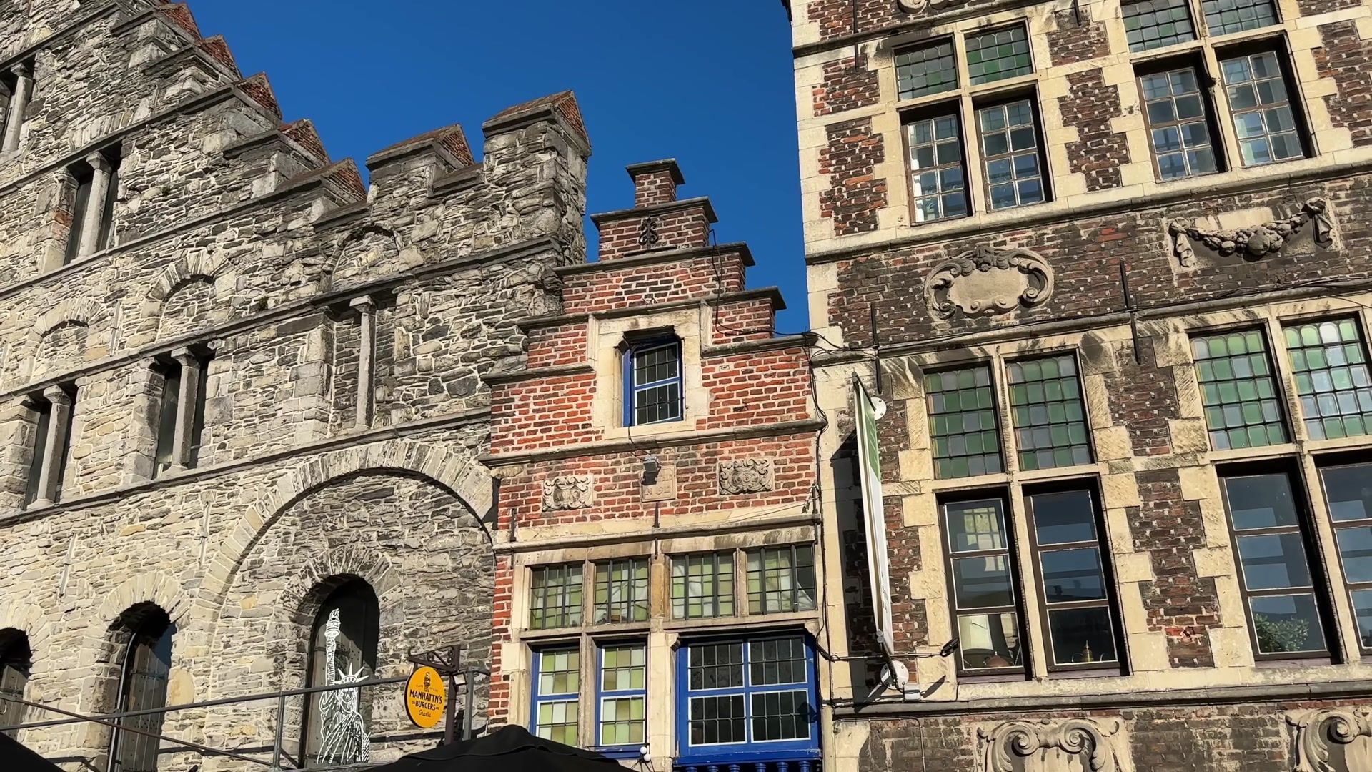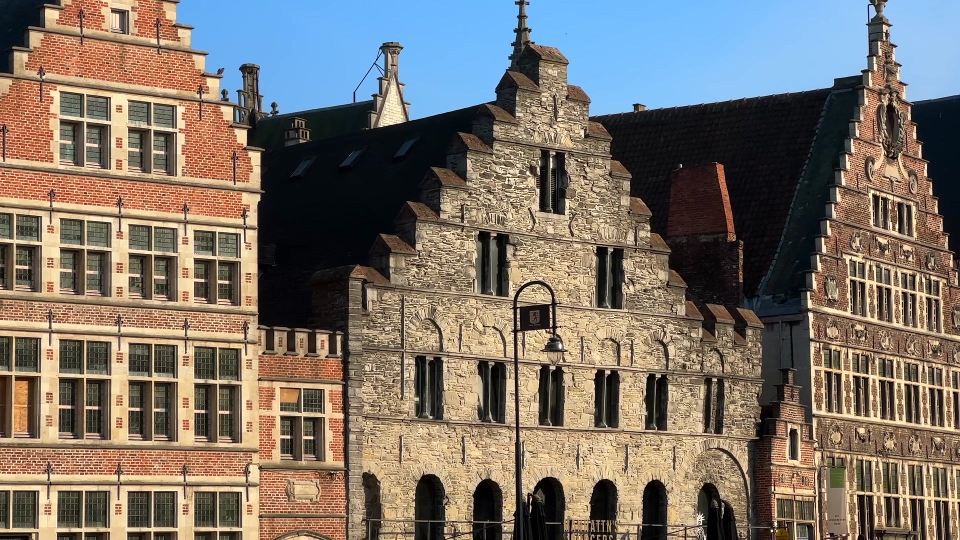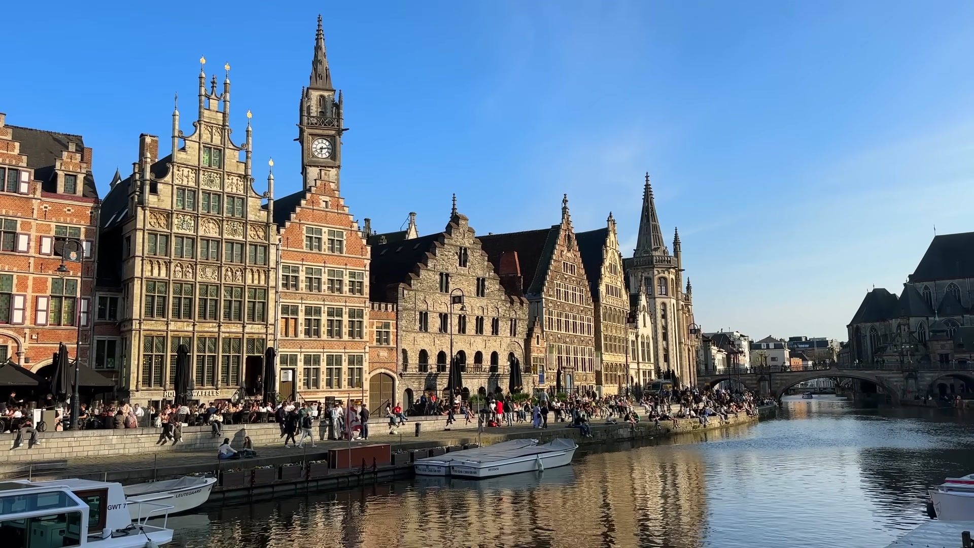 I arrived at the most fascinating place in Ghent, Graslei. I could not get enough of looking at this riverside. Every evening, both tourists and locals gather here. It is always crowded, lively and unbelievably beautiful. In the past, this used to be a busy port, full of trade activity. Workers loaded and unloaded grain and foreign goods onto ships. You can still see traces of those times in the magnificent buildings of the Belgian guilds.