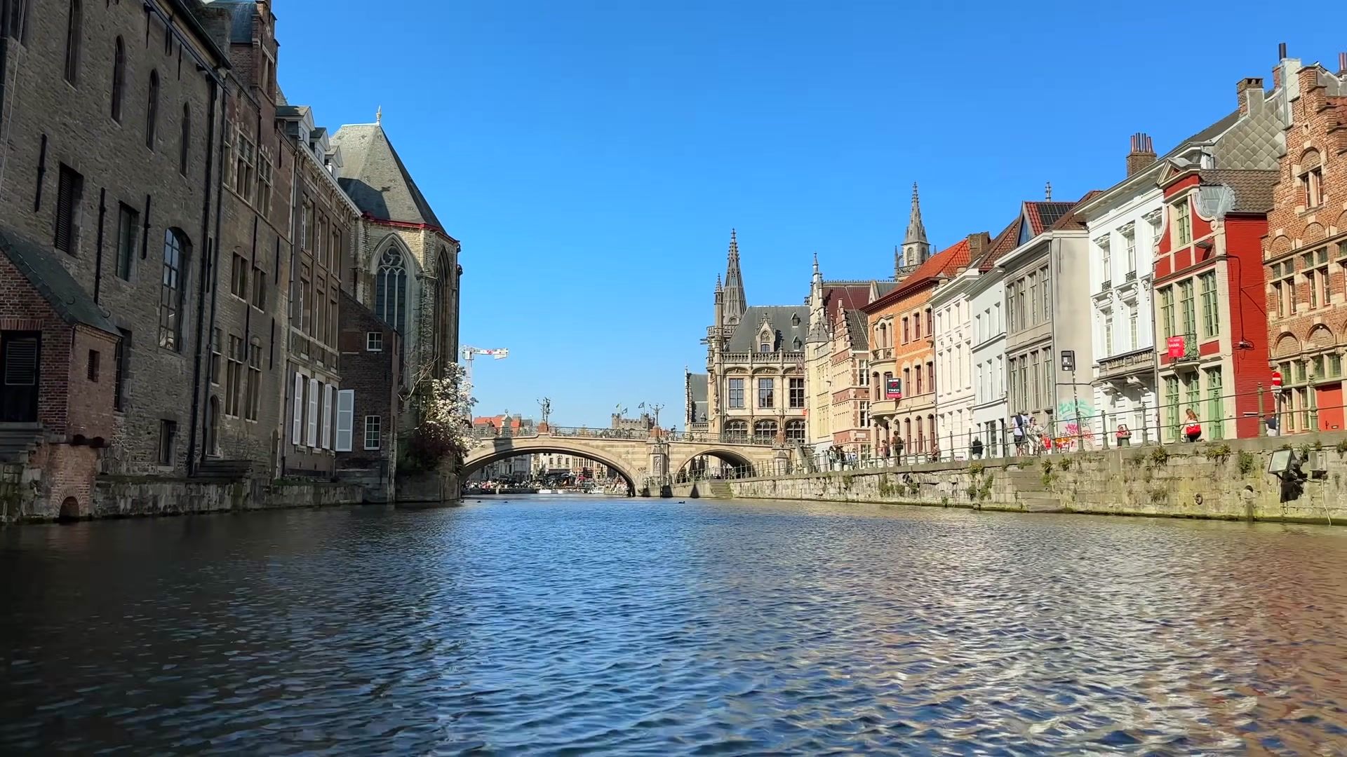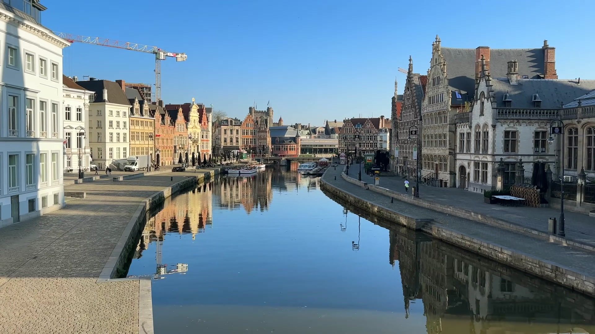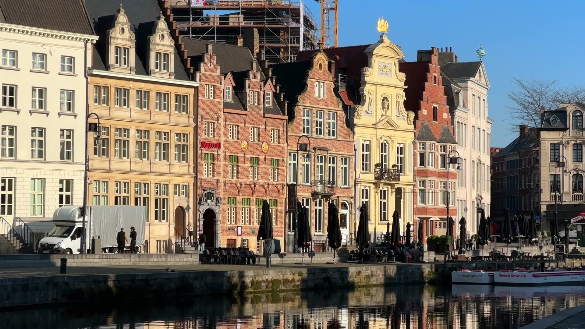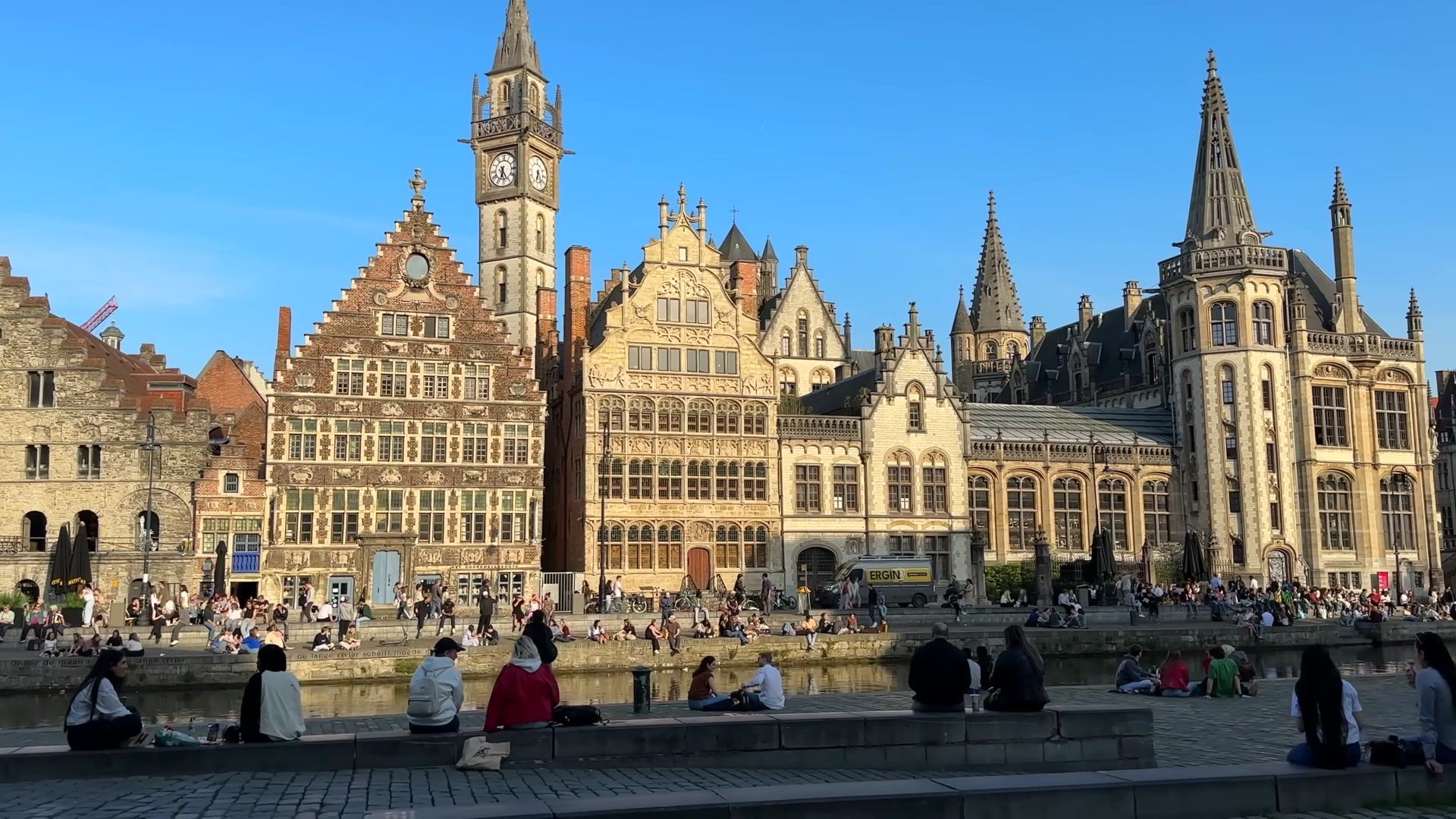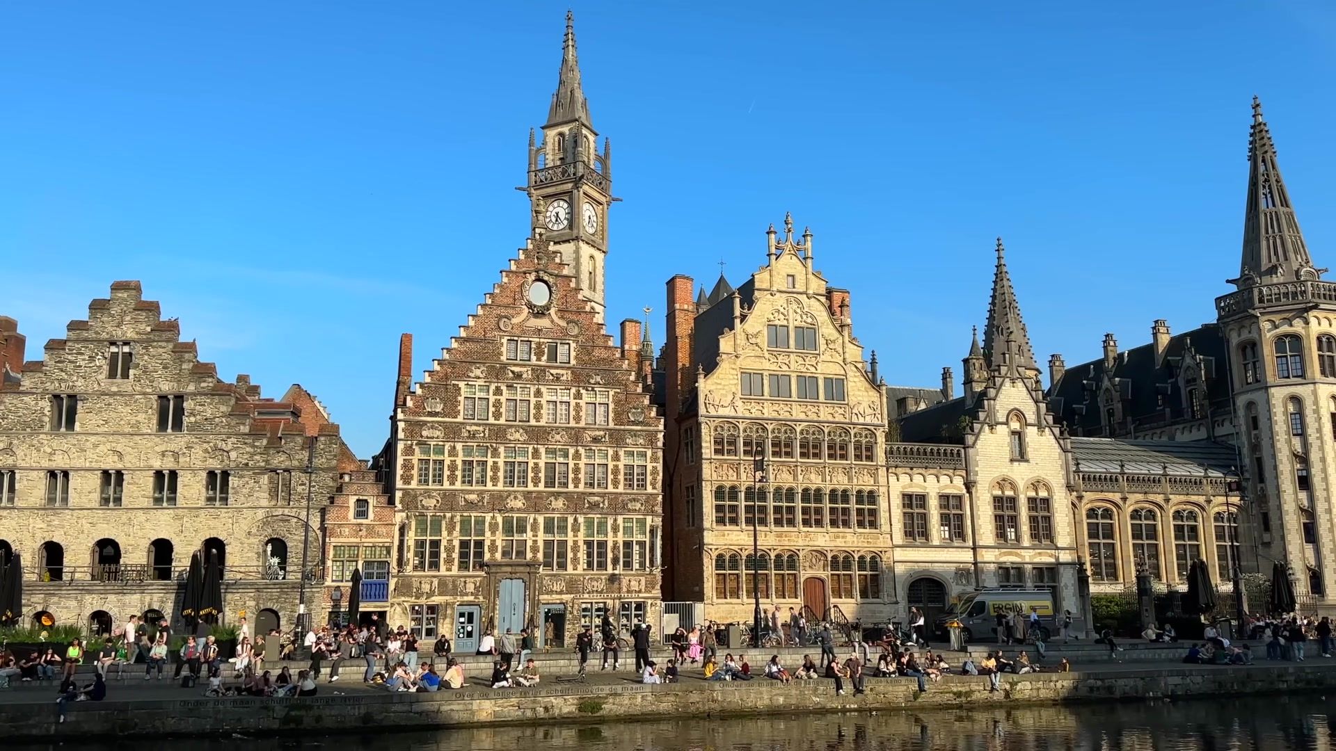 I arrived at the most fascinating place in Ghent, Graslei. I could not get enough of looking at this riverside. Every evening, both tourists and locals gather here. It is always crowded, lively and unbelievably beautiful. In the past, this used to be a busy port, full of trade activity. Workers loaded and unloaded grain and foreign goods onto ships. You can still see traces of those times in the magnificent buildings of the Belgian guilds.