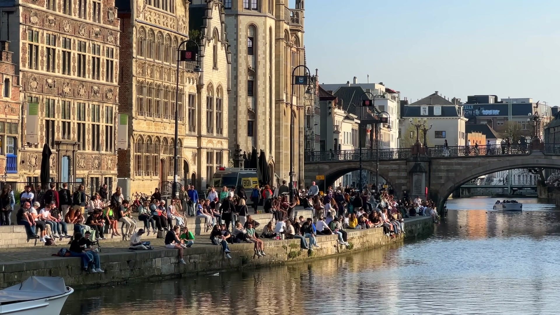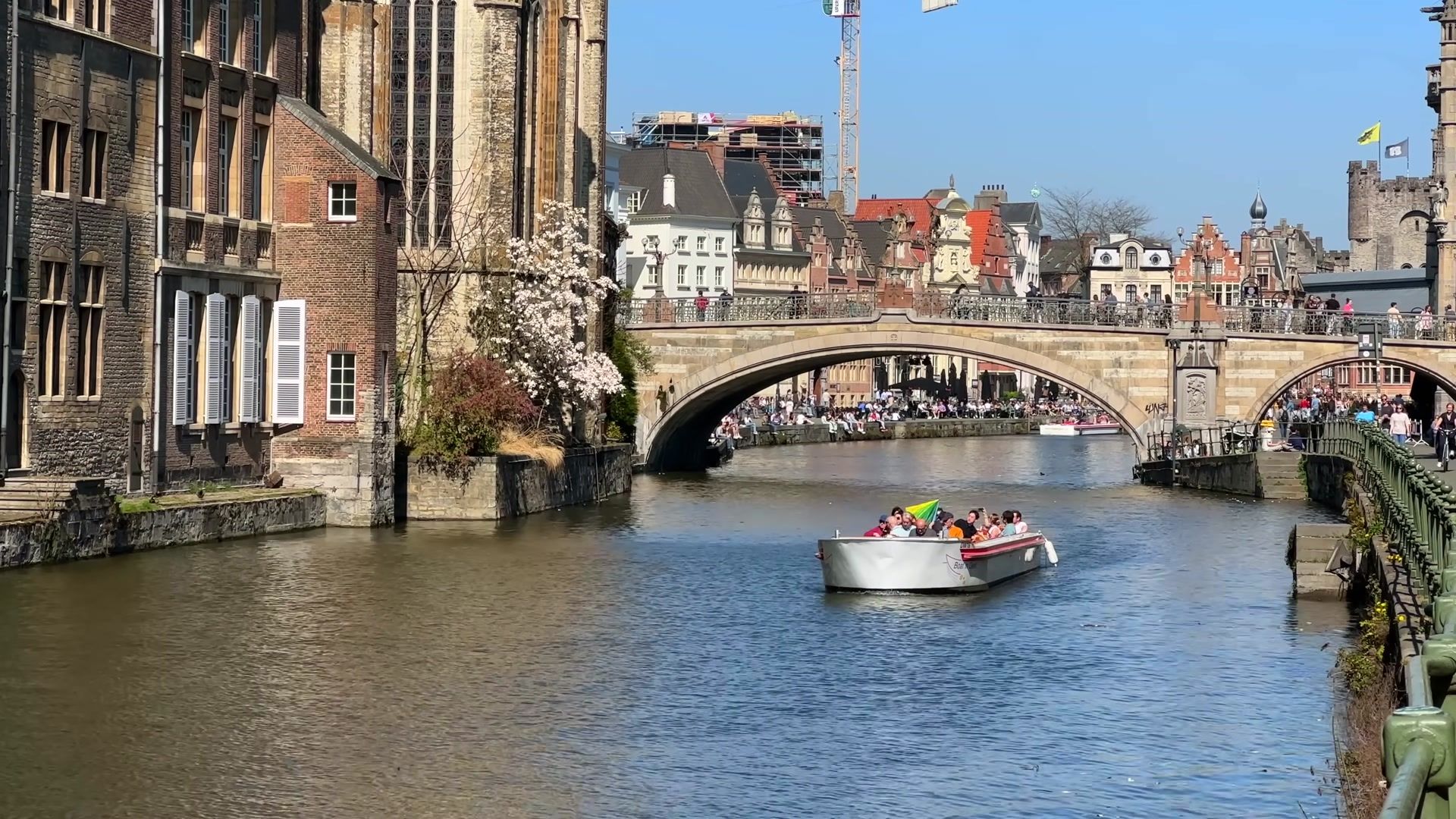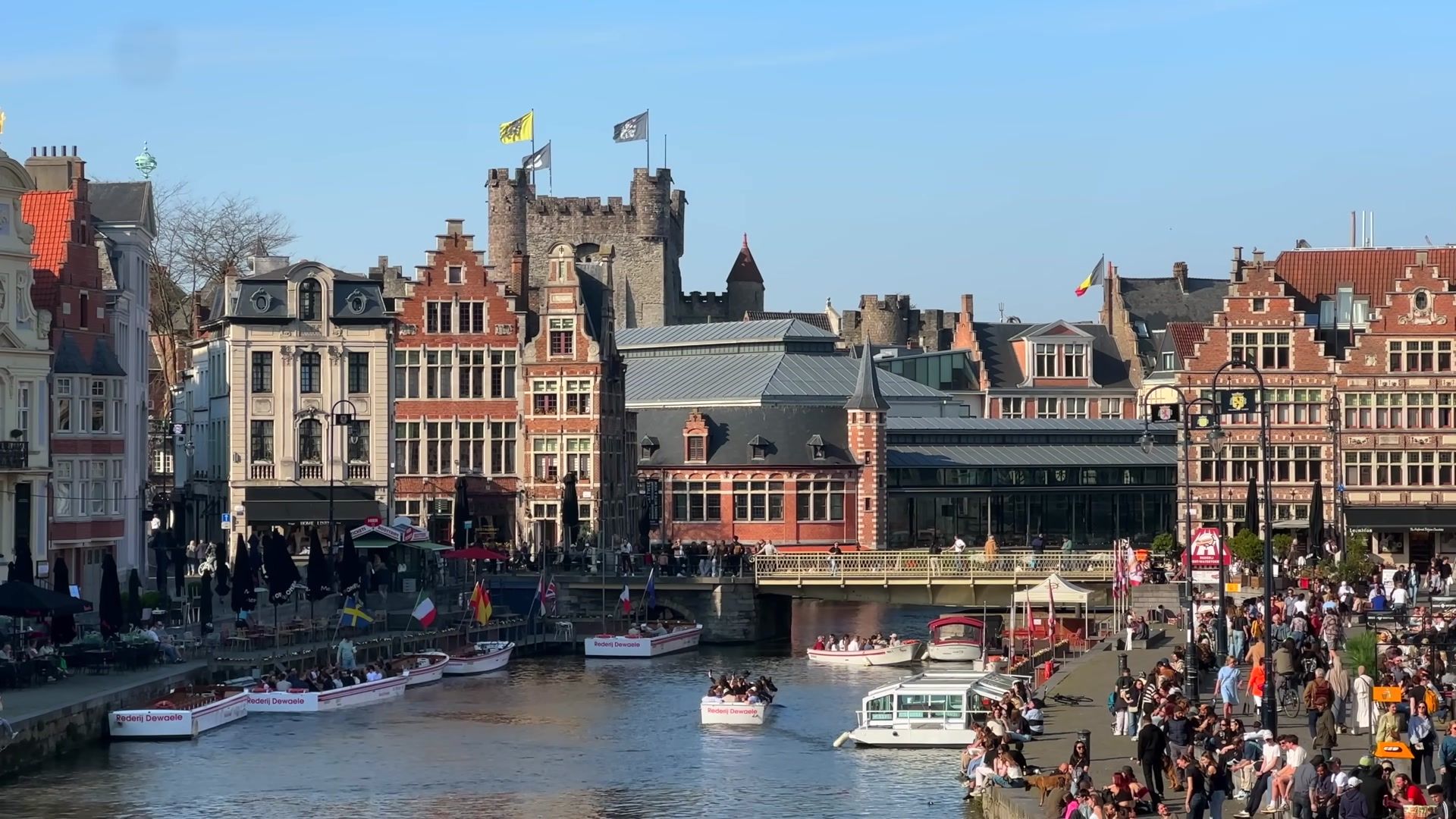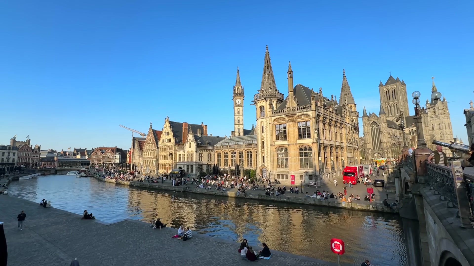 I arrived at the most fascinating place in Ghent, Graslei. I could not get enough of looking at this riverside. Every evening, both tourists and locals gather here. It is always crowded, lively and unbelievably beautiful. In the past, this used to be a busy port, full of trade activity. Workers loaded and unloaded grain and foreign goods onto ships. You can still see traces of those times in the magnificent buildings of the Belgian guilds.