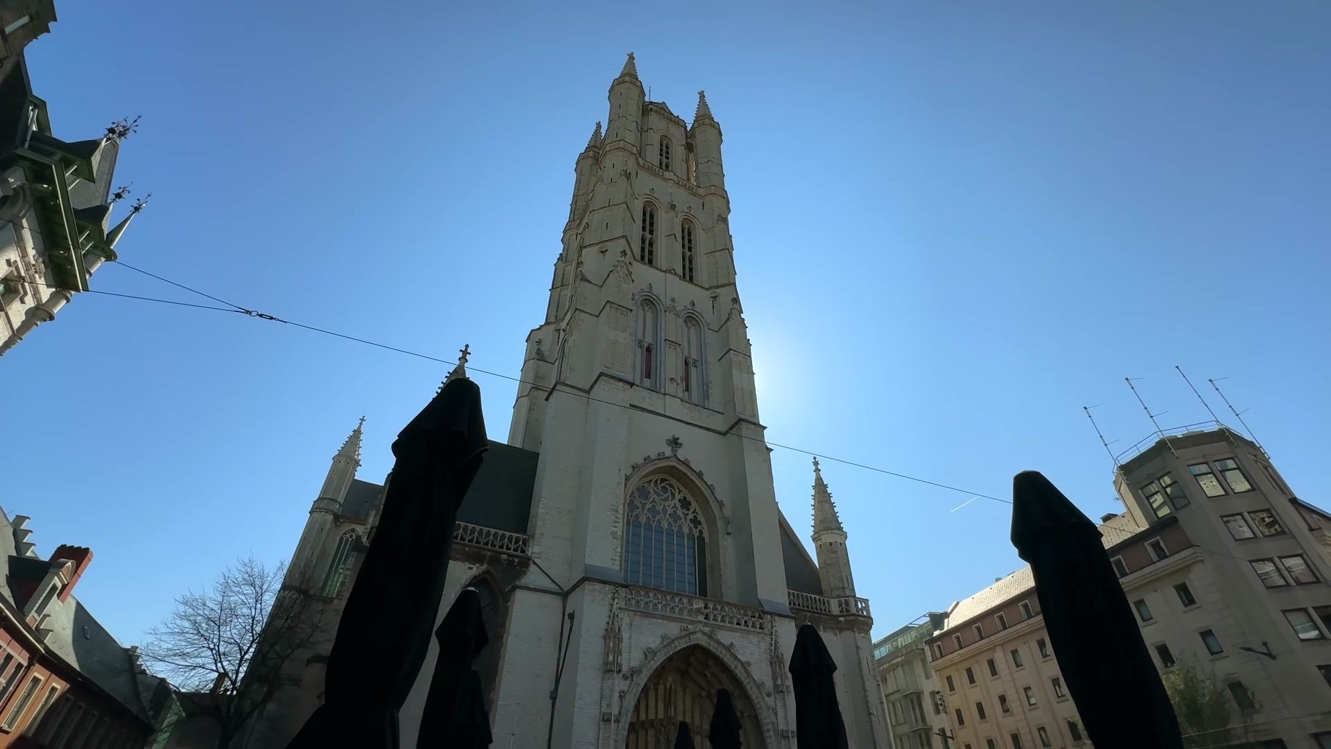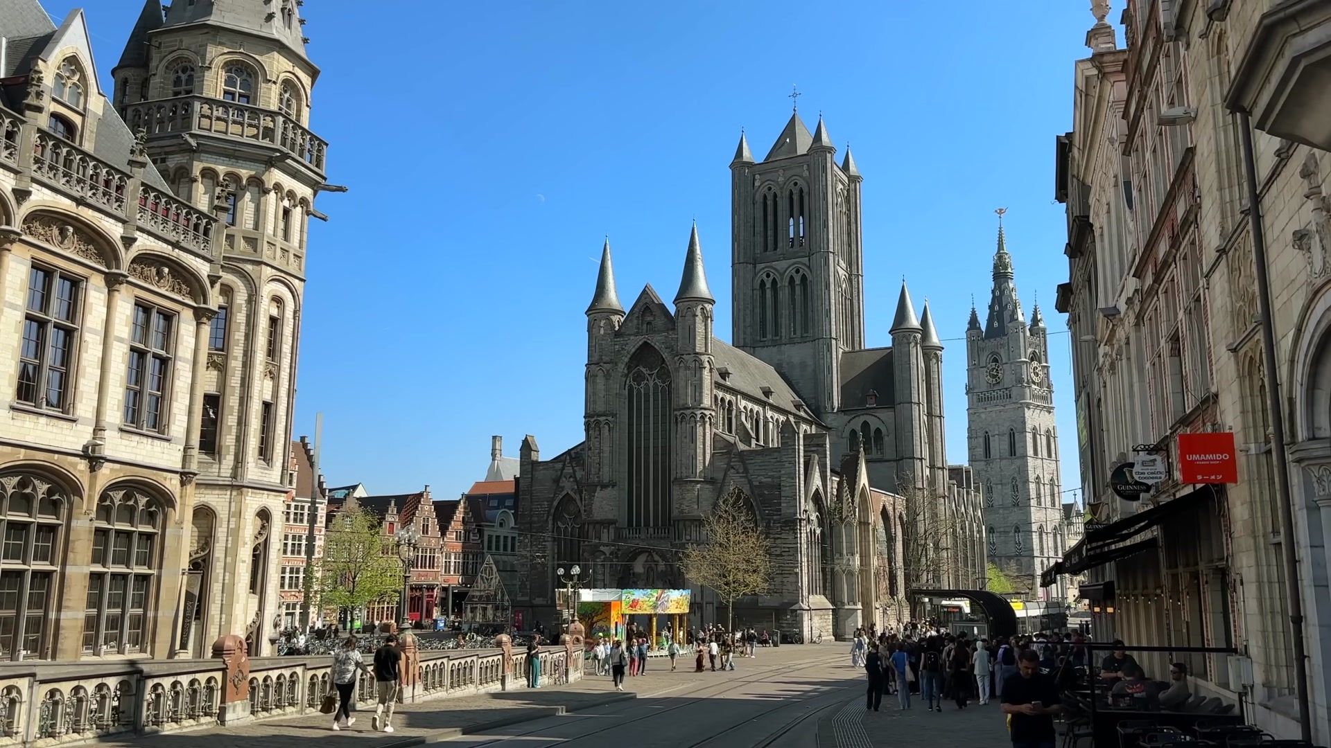 In front of us is Saint Nicholas Church. This is true Gothic architecture. Construction began in the tenth century. It was built in the Scheldt Gothic style, named after the river. The city and wealthy guilds supported the construction. At first the church tower was used as a lookout and the city bells were hung there. Until the tallest bell tower in Belgium, the Belfry, was built.