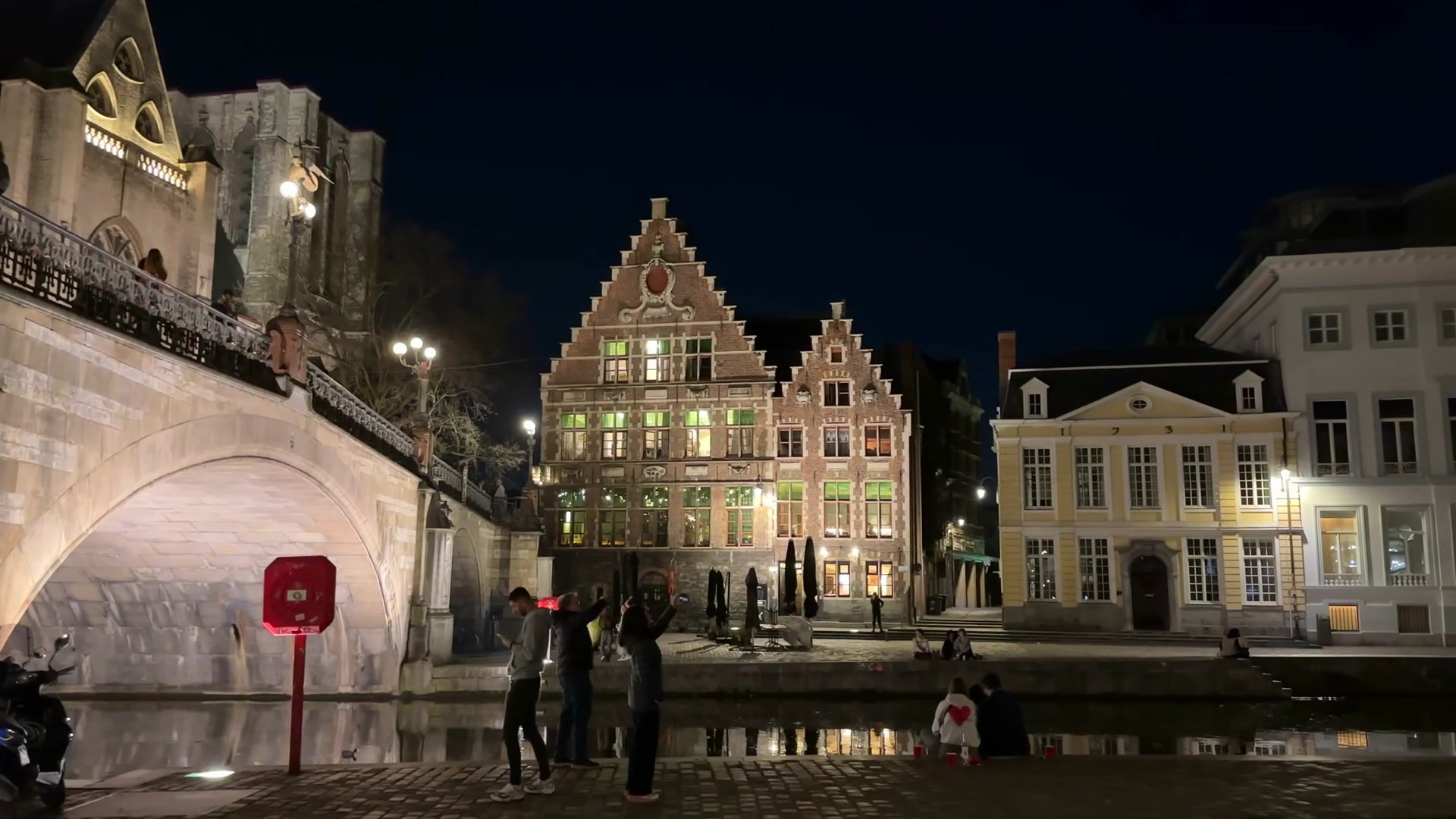 At night the city changes completely. The riverside where the hostel is located is, as always, full of people. Some are enjoying waffles, others wine. Bicycles are the constant part of the view. They are everywhere. The buildings in Ghent are beautifully lit at night. In the evenings, the city gains a whole new charm.