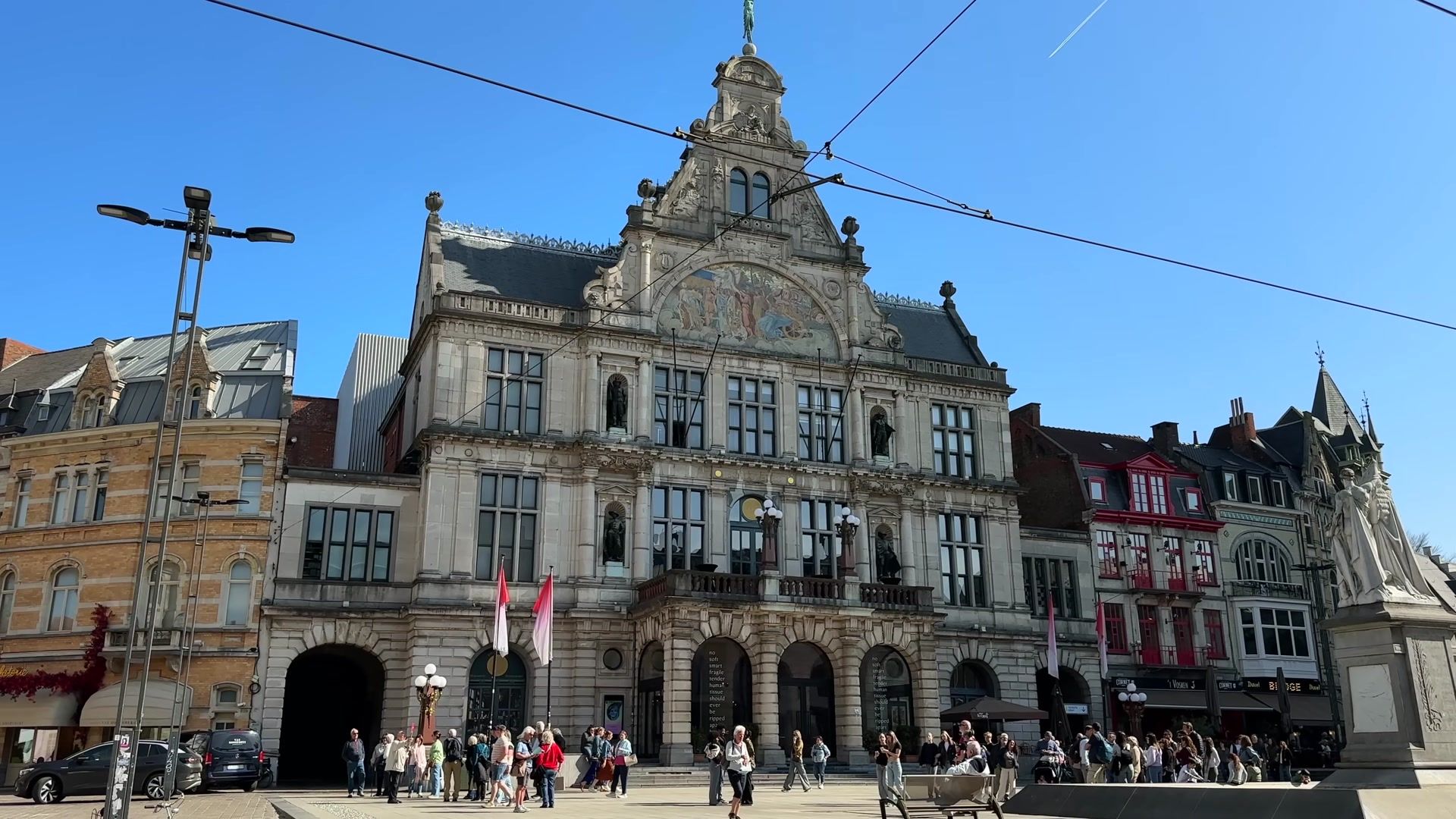 And believe it or not, we moved only two hundred meters from the Graslei and the hostel. Everything is so close here. After passing the Belfry, we reached a wonderful square with the Royal Flemish Theatre building. Although it looks historic, it was actually built at the end of the nineteenth century.