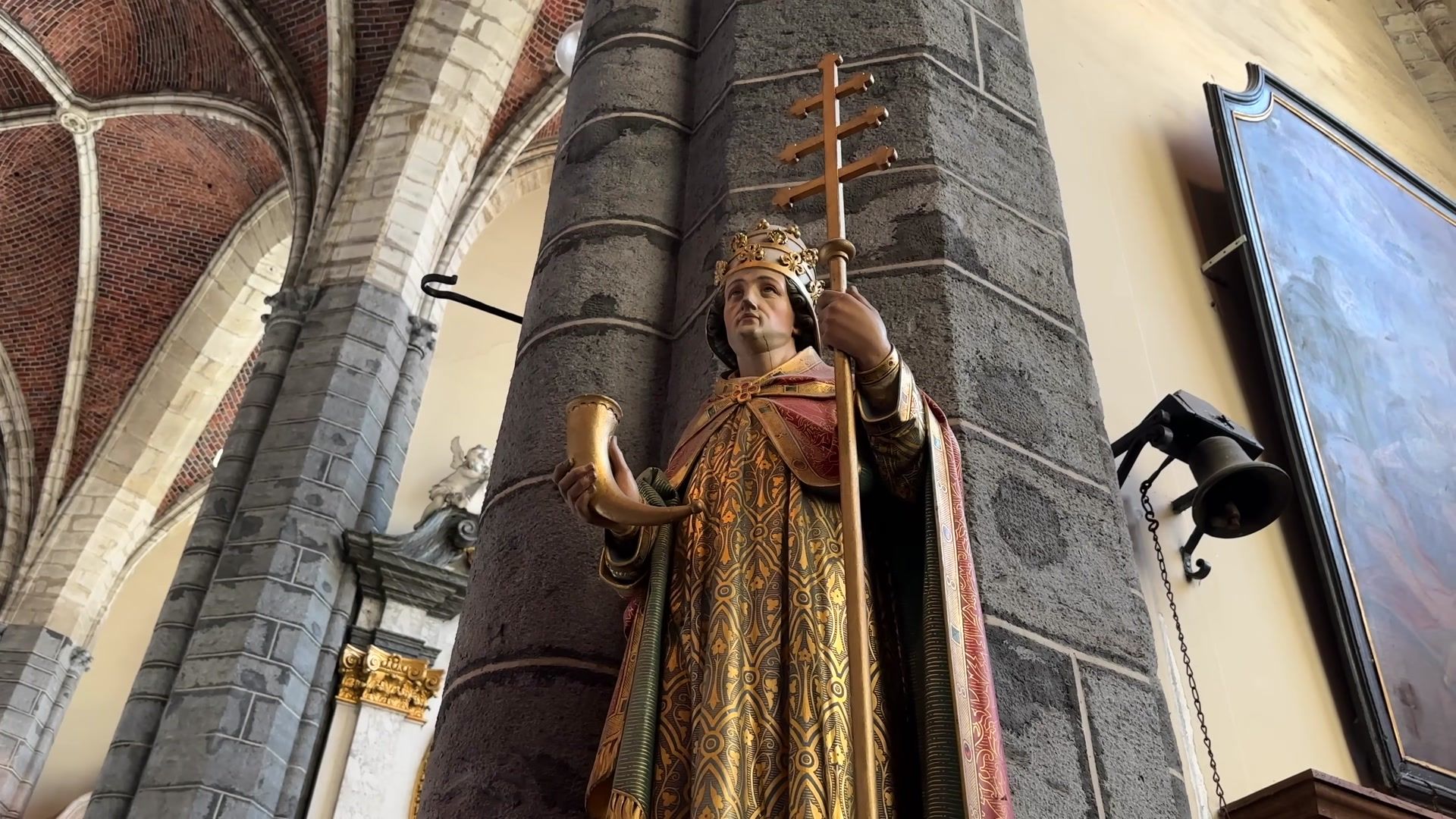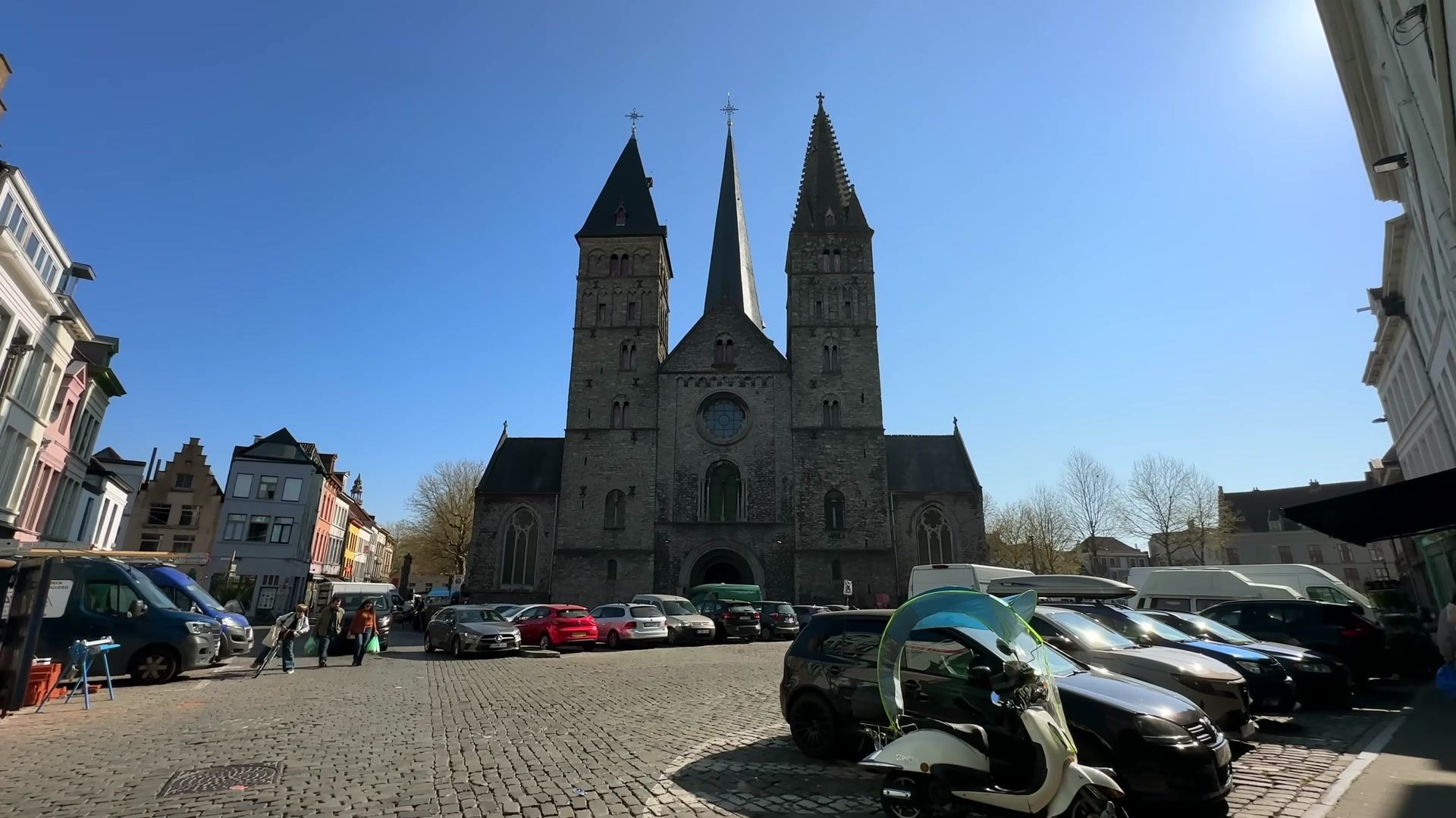 Next to one of Ghent’s oldest churches, Saint James Church, a flea market is held. Its Romanesque towers date back to the tenth century. Gothic additions were made in the fourteenth century. Baroque interior decorations were added in the fifteenth century. It underwent a full restoration a hundred years ago. Nearly a thousand years ago, a small church was built here, dedicated to Saint James, because this was one of the starting points of the Camino de Santiago.