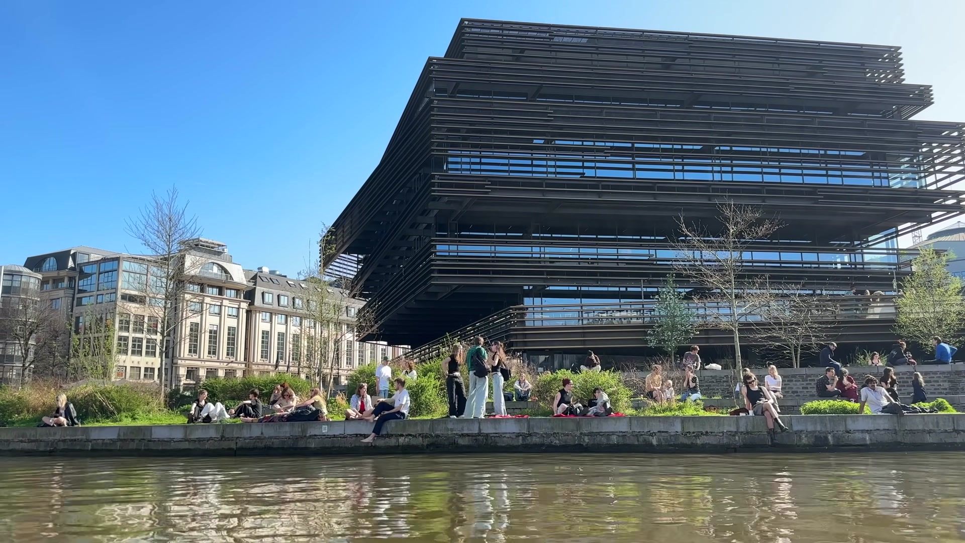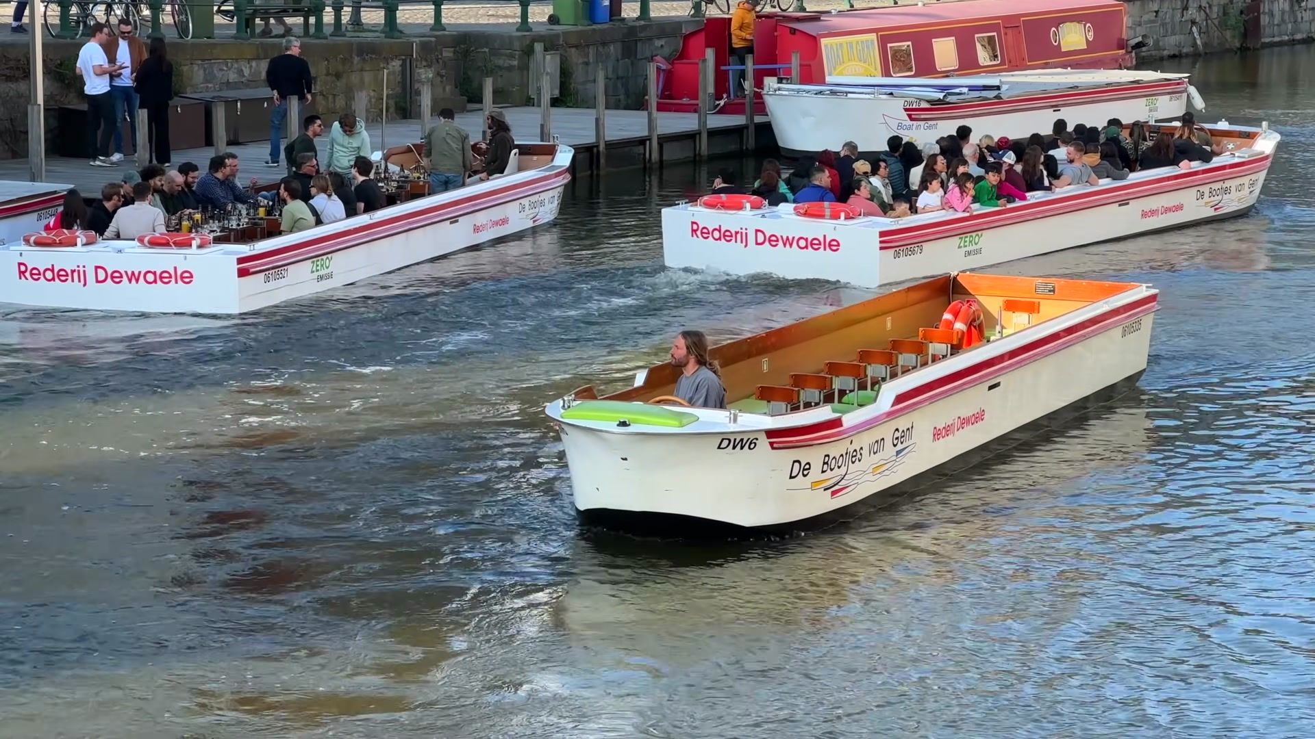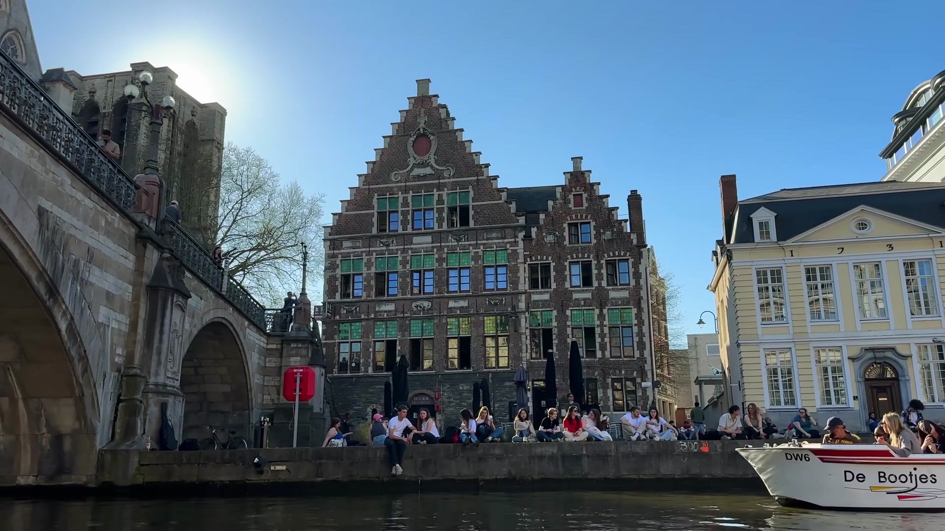 For example, the building of the captains guild from the fifteenth century. These sailors played an important role in the city's trade and river transport on the Leie. They had the right of free travel in Flanders and were the only ones allowed to navigate Ghent's inland waters. If there were free captains, there were also dependent captains. Their guild was in building number seven on the opposite bank. These captains worked for others and delivered goods to the free captains outside the city.