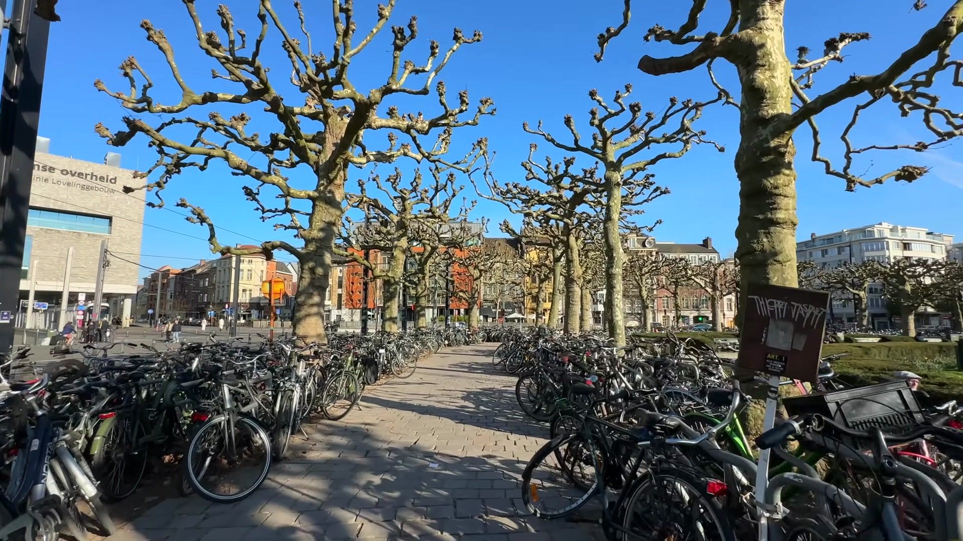 As soon as we left the station, we came to a pedestrian square surrounded by a large bicycle parking area. After just a few steps, I realized how popular bicycles are here. This is actually great because if there were as many cars as bikes, there would be no place to park them all. There are probably thousands of bikes here. But this also causes some problems. For example, how can you tell which bike has been here for a week, which for a month and which for years I think this is a real issue. I must also say that it does not look very nice. Maybe if part of it was placed underground and used for a small fee, it would be better. This way, the parking time could be monitored. They could see who leaves their bike for too long without paying and maybe even remove the bike. Still as soon as you leave the train station, you realize that bicycles are the most common means of transportation here. But I should also mention that trams work here very well, fast, quiet and efficient. You can use them too.