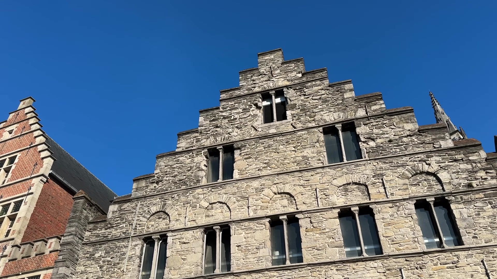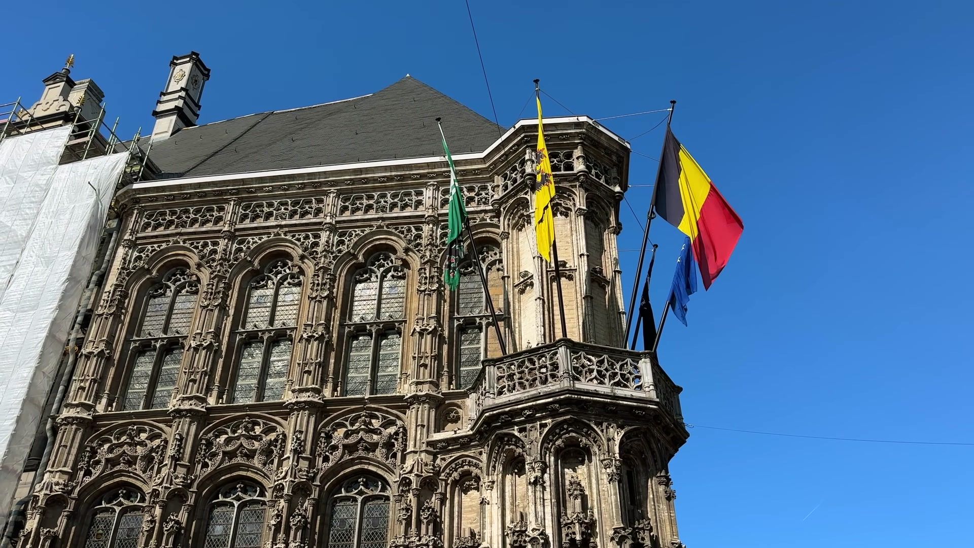 Unfortunately, when I visited, the building was covered with scaffolding and protective sheets. It is a shame because Ghent’s city hall is very interesting, both historically and architecturally. It was planned at the beginning of the fifteenth century as a small Gothic palace, but later they wanted to expand it. Since this happened during the Renaissance period, the project was extended in the Italian Renaissance style. The result is a mixed but very impressive building.