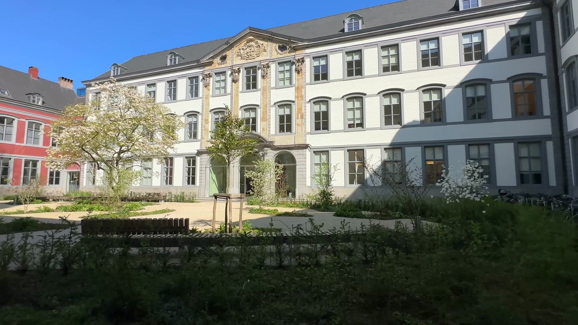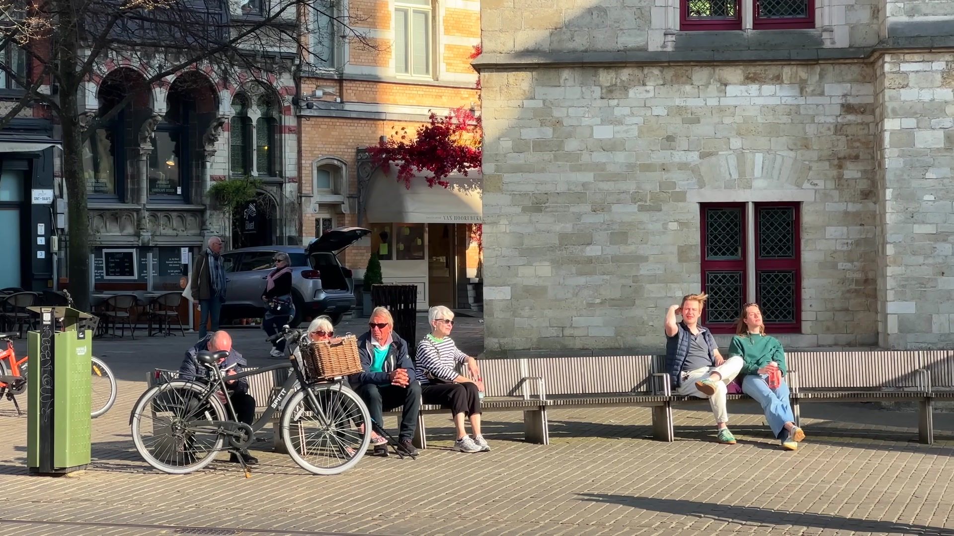 If you want to escape the crowd and the tourists while in the city center, visit the small courtyard right across from the cathedral. It is beautifully arranged and a lovely place. Its architecture, calm atmosphere and greenery are enchanting. You can sit in the shade or in the sun. And yes, it is also a bicycle parking area. In Ghent bicycles are used for both transportation and carrying goods. And they look so elegant.