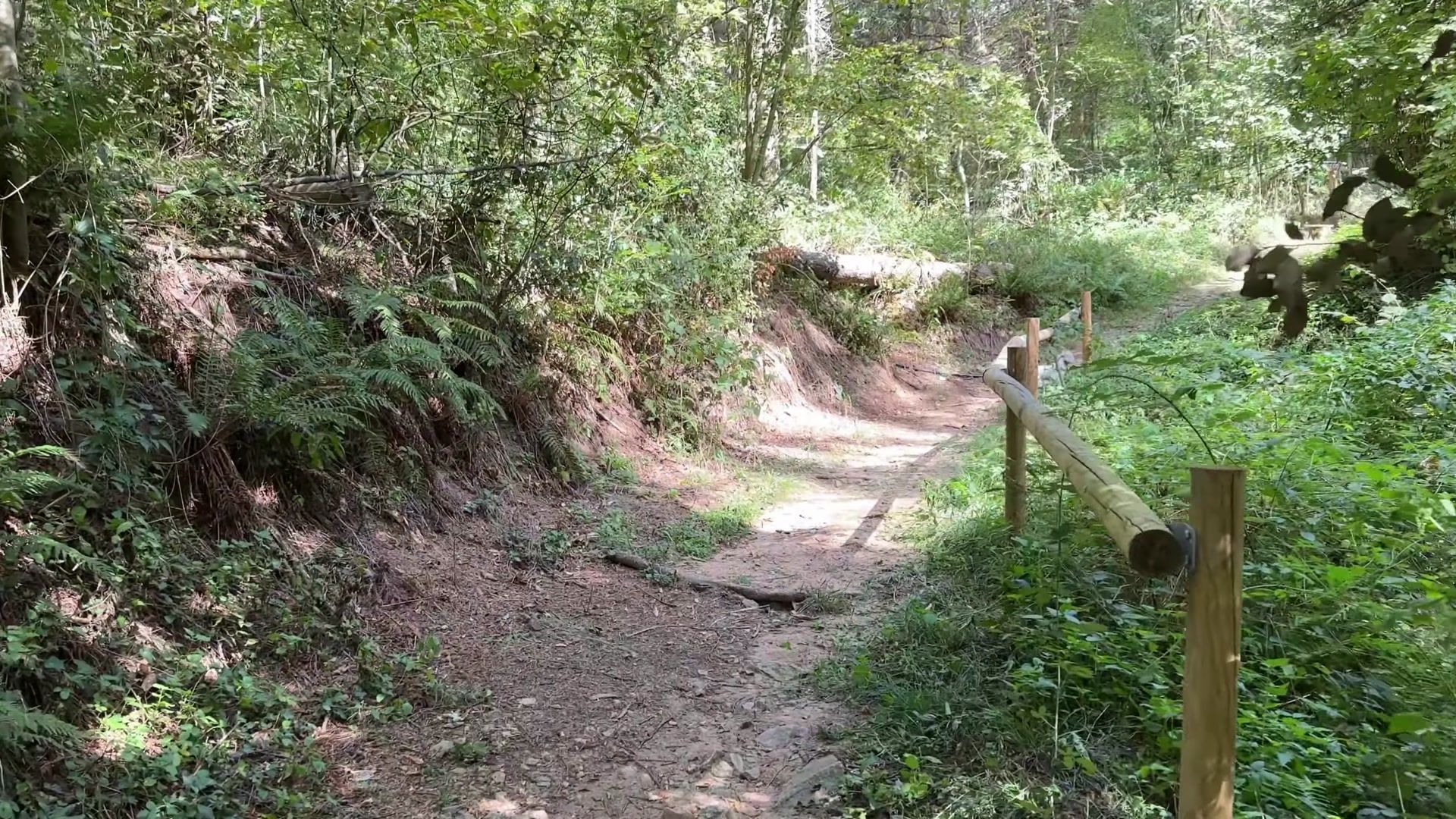 This is a great place for walking, especially if you wear sneakers, because there are roots and stones in some areas. It's a nice walk in the forest and there are benches for resting. You can also learn about local plants here. According to the park map, we were first at point 16. The sequoia here was quite tall, reaching up to 40 meters. Every tree has a description, such as when it was planted, how wide it is and other information.