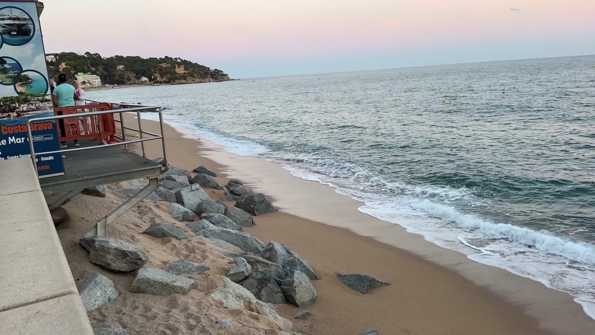 On the way to Lloret de Mar, we wanted to explore the city a bit. Pine trees are very common here and of course, there are also palm trees, since we are in Spain. We approached Filsa Beach, where we often park because it has large parking areas.