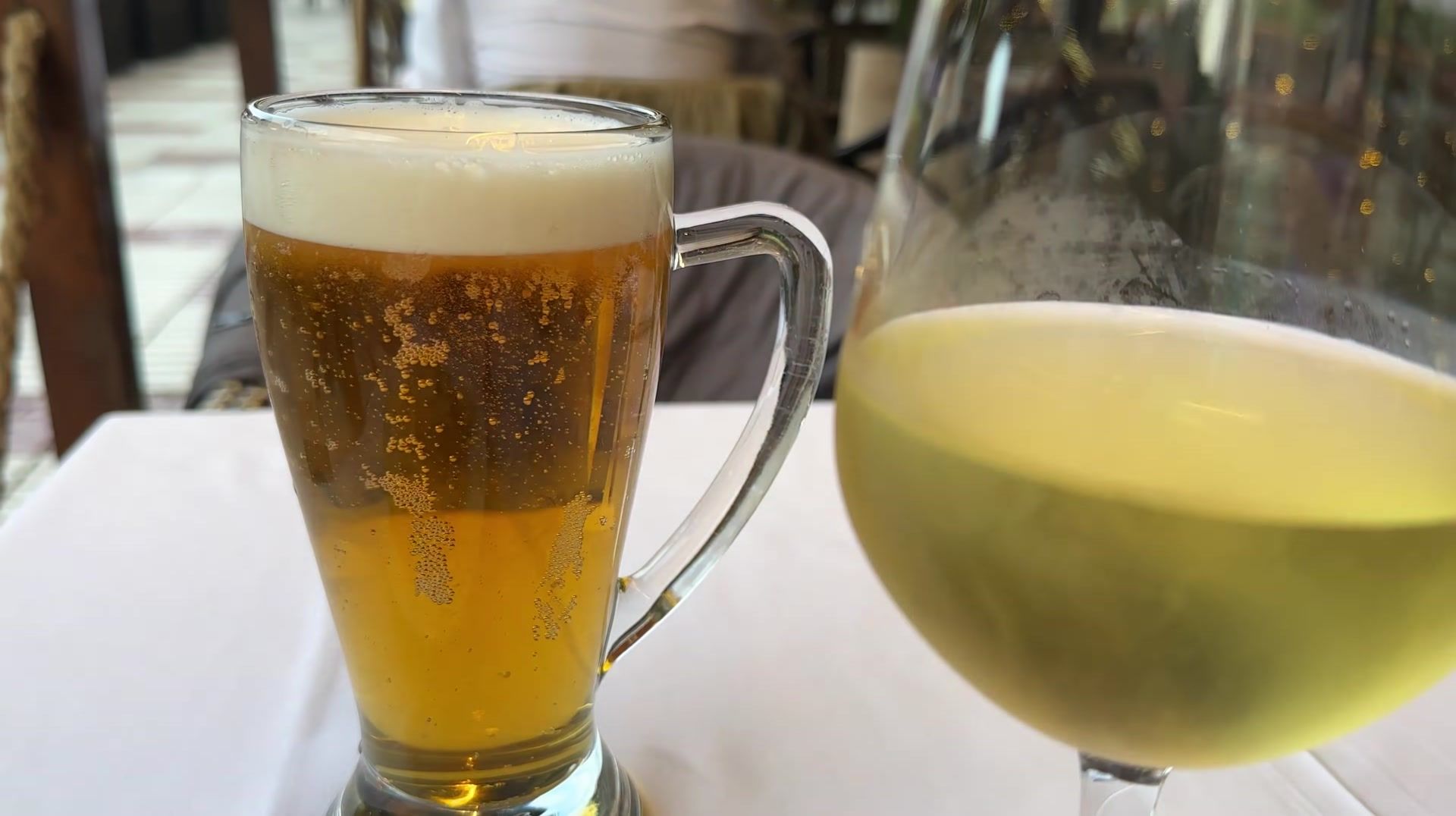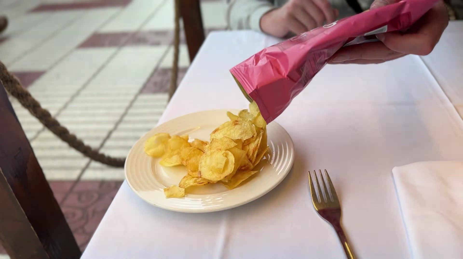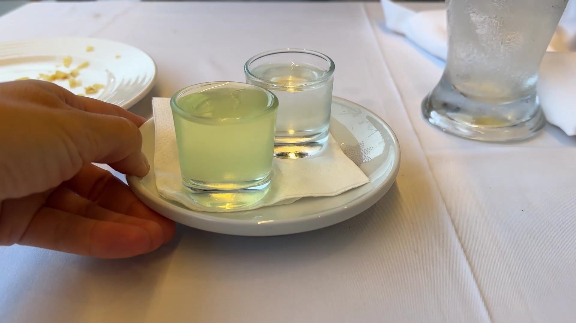 They brought the bill, which was about 47 Euros. The chips were complimentary and they didn’t charge us for them. And they offered us a "chupito", a small shot, which is usually a sweet drink. My friend had apple liqueur and I ordered limoncello. The limoncello was a bit stronger, but very tasty.