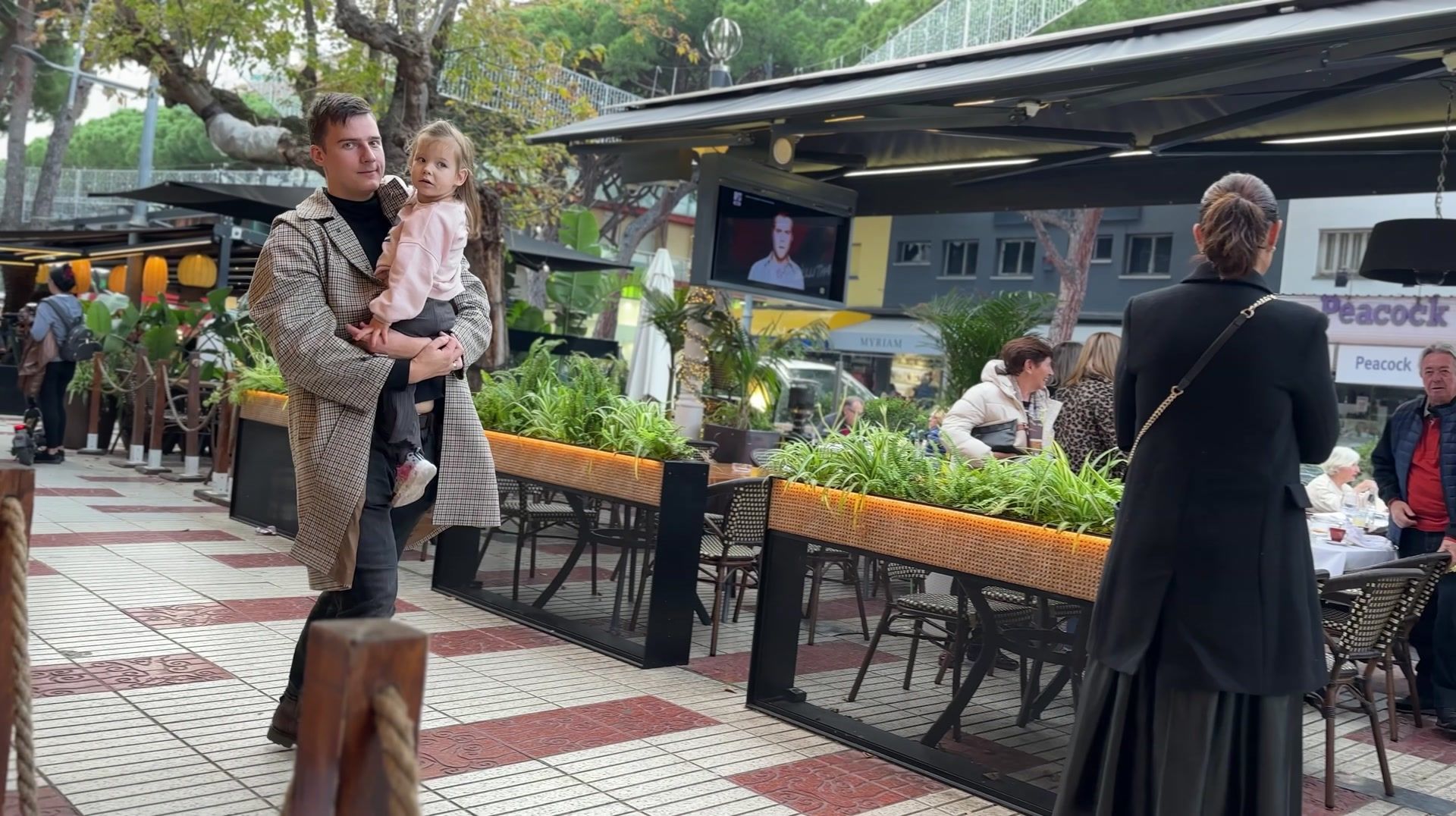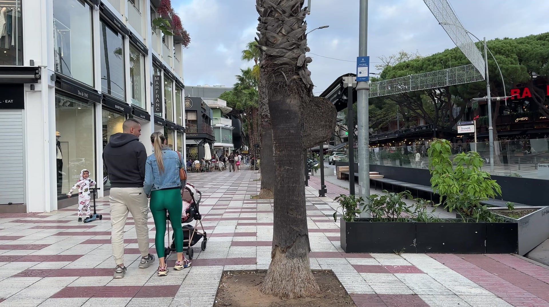 We walked inland towards the city center. We saw many open restaurants on the main street and we thought it might be a bit warmer there since it was very windy at the beach. My nose even froze. We looked at the streets on the second beach line, where there are many pine trees, adding a warm vibe to the city. I wanted to check the prices of apartments here, so I researched on Idealista. The prices here are around 300.000 Euros, which isn't very cheap.