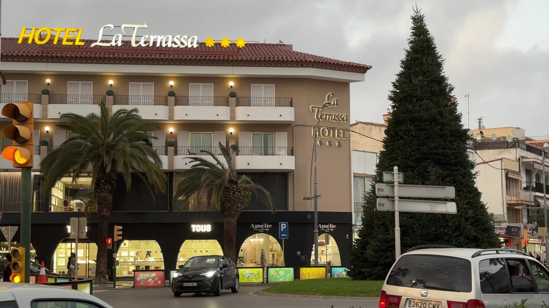 Hello dear travel enthusiasts. Today we arrived in Platja d'Aro a town in Costa Brava. This is our first time here. The view along the way was quite beautiful, with golden leaves and Christmas decorations.