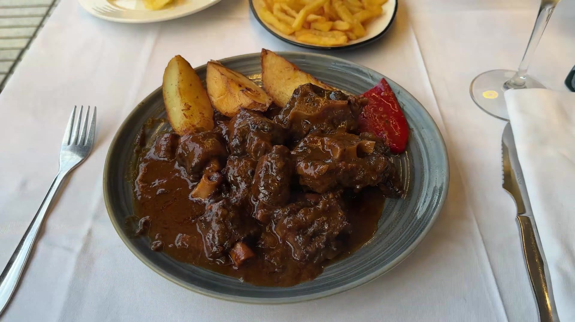I started my tasting. The oxtail arrived and it really looked beautiful, with meat, potatoes and peppers. My friend had barbecue ribs and potatoes and he said the meat was very tender. I was definitely eager to try the oxtail because it was a completely new dish for me. So, I tried it right away. It was really delicious. I don't know how it's made in other restaurants, but here it was absolutely fantastic, the meat melted in your mouth and the sauce was amazing. I definitely recommend trying this dish here.