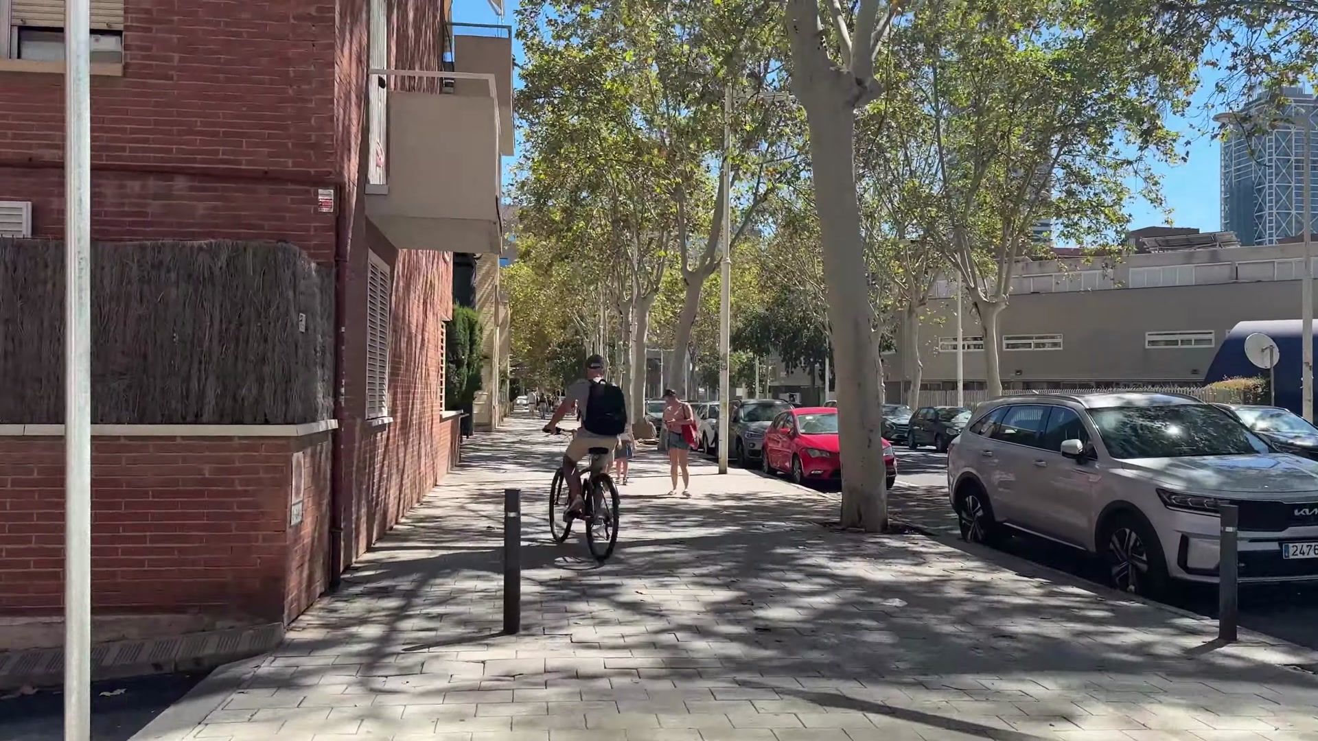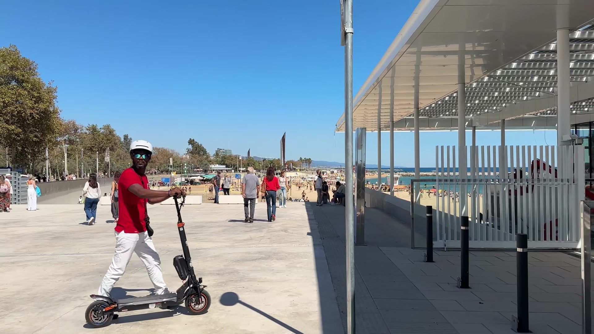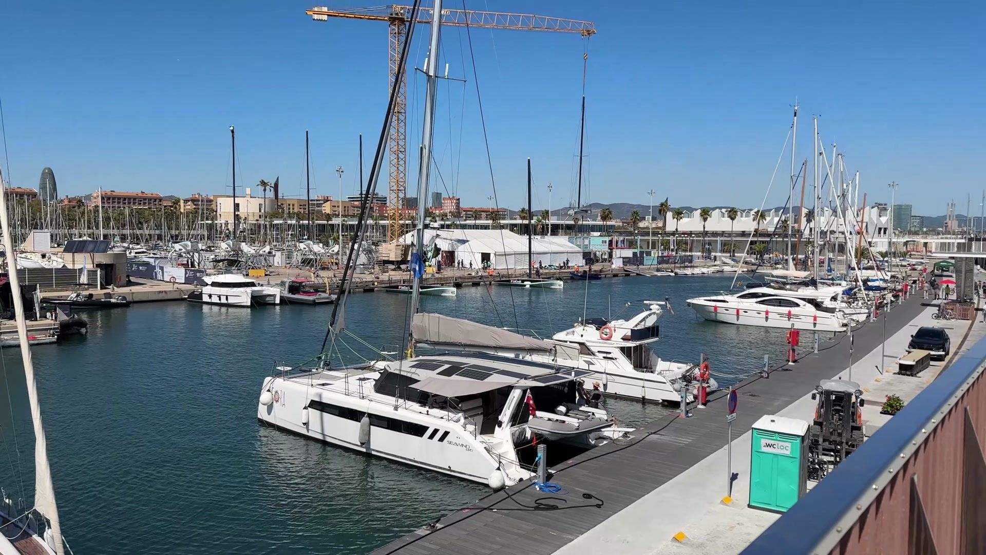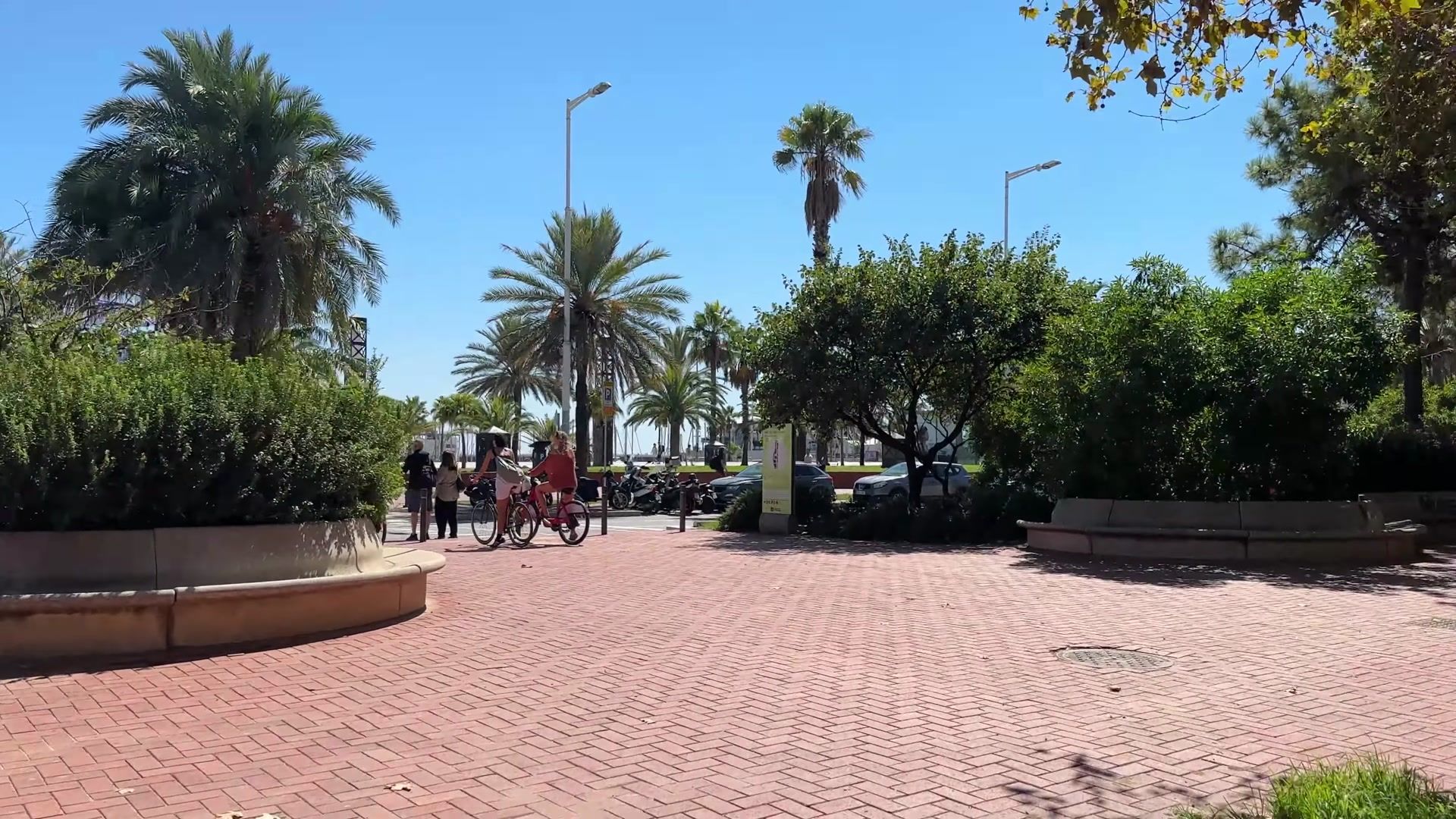 This is a fantastic space for walkers, touristsand cyclists. There’s a large promenade aboveand it’s crowded right now, almost no empty spots. People were watching the regattaand we joined them. Palm trees have always been here, giving it a lush vibe, but now it’s even more organized and clean. New restaurants have opened below, currently only two or three, but more are expected to come over time. We watched the American regatta taking place in Barcelona. Downstairs, there are plenty of benches and spaces to sit or lie down. It’s a great relaxation spot. In the distance, you could see the sails of the regatta boats. Some construction is still ongoing, but that’s normal as it wasn’t finished before the regatta. What mattered was that the area had opened and was ready for use. These little details will be improved over time.