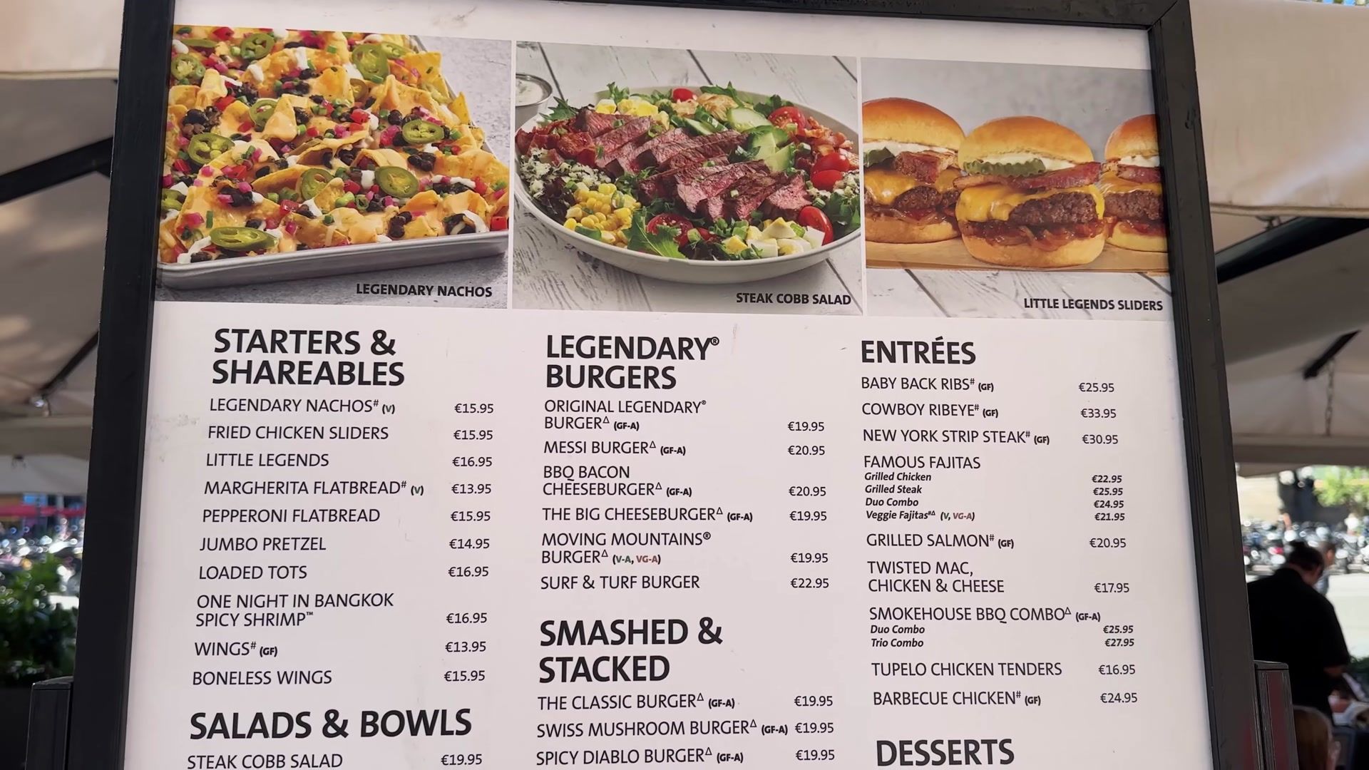 We took a stroll around Plaça de Catalunya,hoping Hard Rock Cafe was open because we were really hungry. I especially was ready to eat everything! We knew exactly what we wanted. The key was to find a spot and make sure they had ribs available. There’s a terrace here where you can sit, or you can choose to sit indoors. On the menu, we could get Baby Ribs for €25.95.