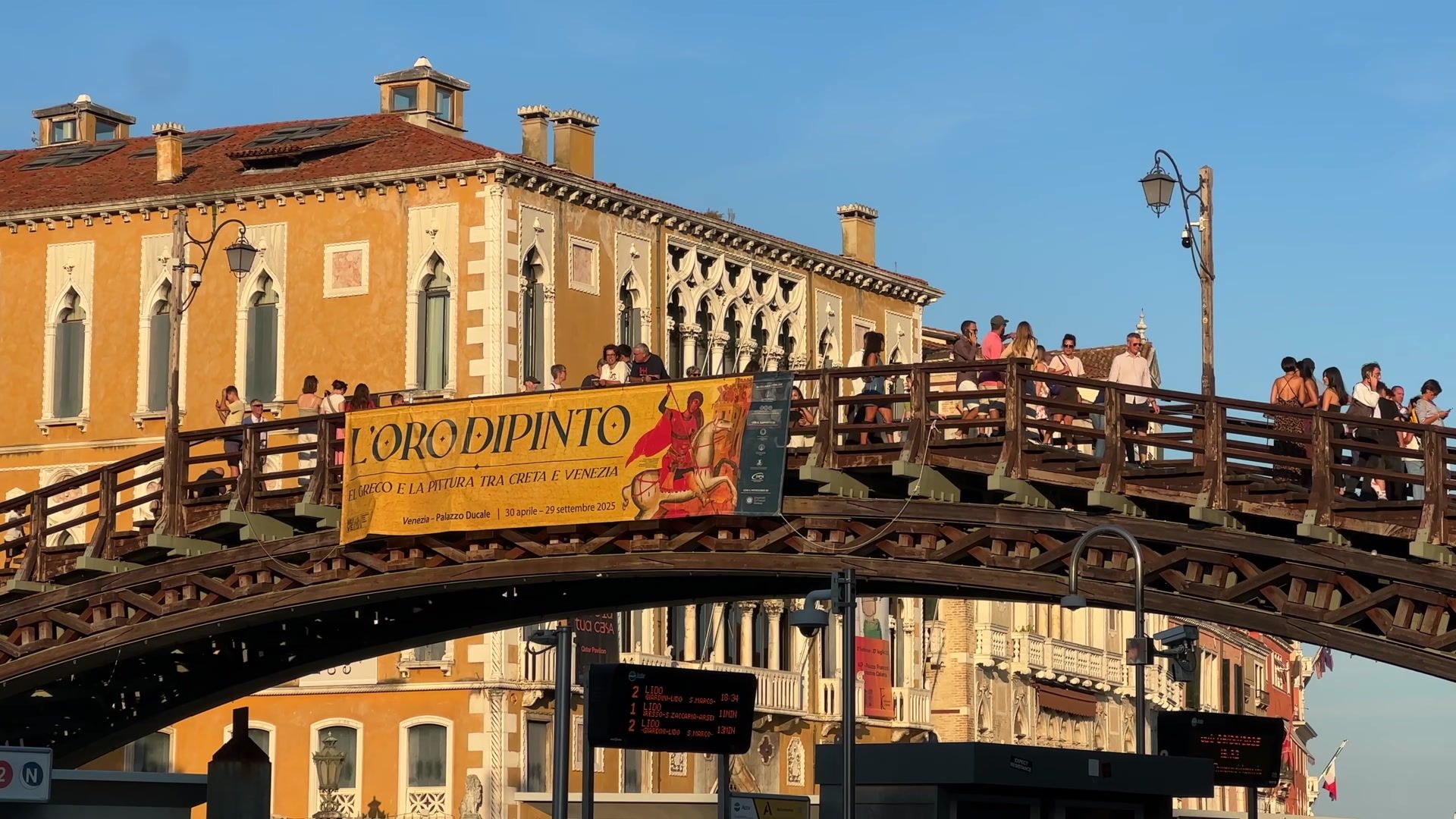Very close to Palazzo Contarini, there is a place that again imo, should be visited during the golden hour. The best photos of the Grand canal and Santa Maria della Salute church view are taken from this wooden Accademia bridge. Also I strongly recommend you cross the bridge and walk along the Accademia museum towards the Peggy Guggenheim Modern Art Gallery and the basilica with the most luxurious view of Venice. This church was built because the city survived a terrible sickness in 1631. That illness was so bad that it killed around one hundred thousand people. It was more than one-third of the city. You can find the church at the very tip of the Dorsoduro district. On one side of you is the Grand canal and St. Mark's bell tower. If you walk towards the old customs building Dogana da Mar, a massive area of water stretches out before you. I say definitely come here. To avoid returning by the same path, you can use a traghetto from here.