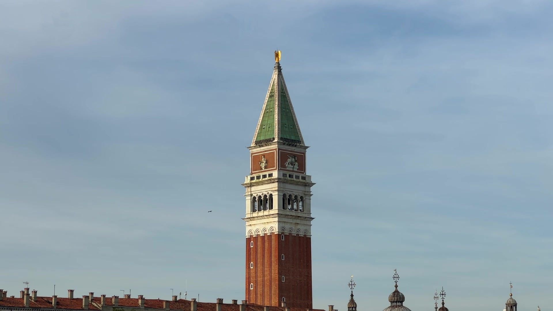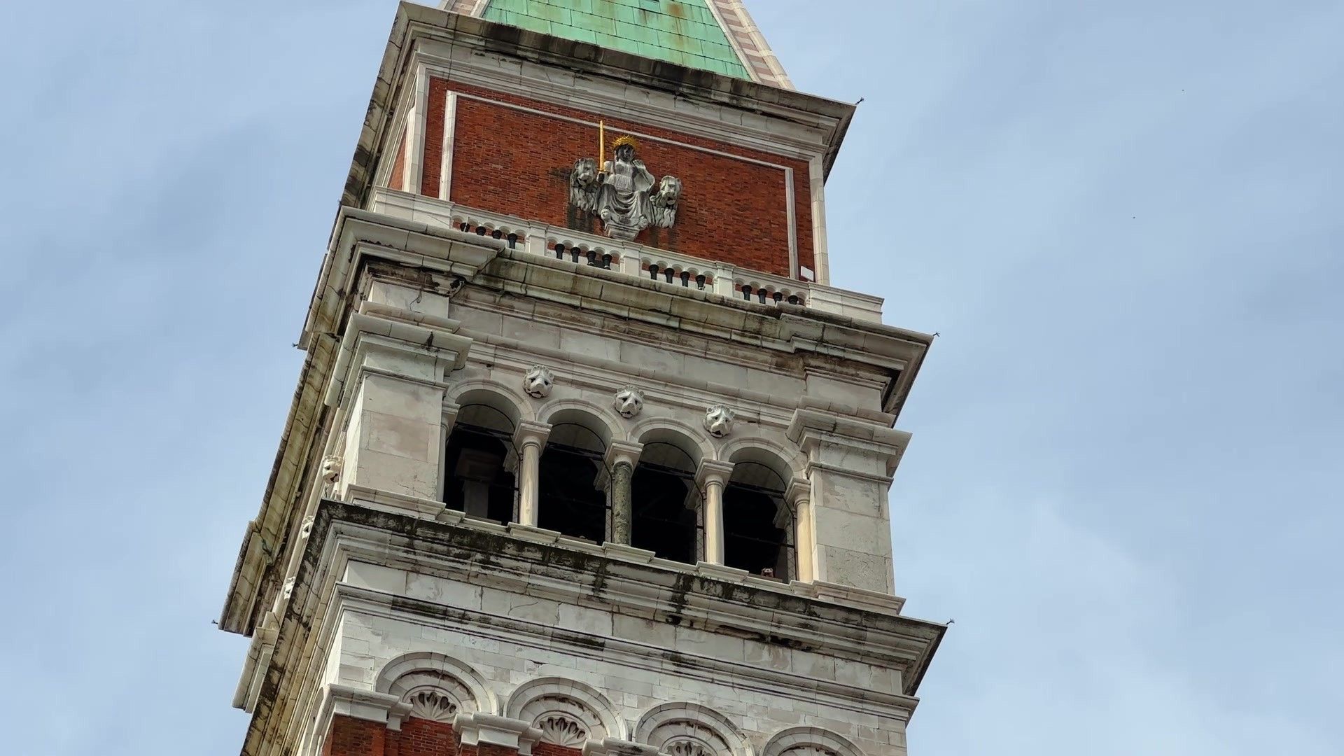Hello dear travel lovers. I went up to the observation deck to see the city from above. We saw St. Marks Bell Tower from there. This tower is one of the iconic symbols of Venice. The first watchtower here was built as early as the ninth century and has served as a lighthouse since then. The tower got its look in the early fifteenth century. It is hard to believe but in a past not too distant by Venetian standards, this tower was completely destroyed. This event happened at the start of the twentieth century. The building was not strong enough. It collapsed into the central square due to earthquakes and general wear. No one was injured fortunately. The tower only damaged the corner part of the Doge's palace. But the damage was much less than expected. The bell tower was restored quite quickly and now we can go up to that magnificent observation deck by elevator.