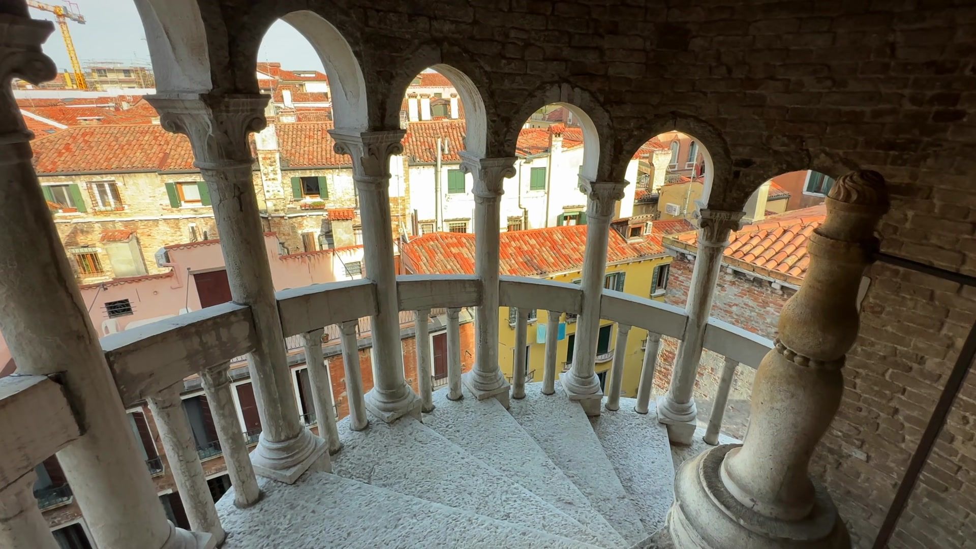 Then I wanted to check out another spot that I think is pretty interesting. Palazzo Contarini del Bovolo was one of the places I really did not want to miss. It was a five minute walk from the square. It falls far behind the tower in terms of height. But its aesthetics are completely different. The palace was built in 1499 for the Contarini family, senators of the Republic of Venice and representatives of a deep-rooted patrician family. Today each of us can be their guest. If you come near sunset around 5 pm, you have a chance to be completely alone here. The panorama is very beautiful. But most importantly, the stairs. This is definitely the most beautiful staircase in Venice imo.