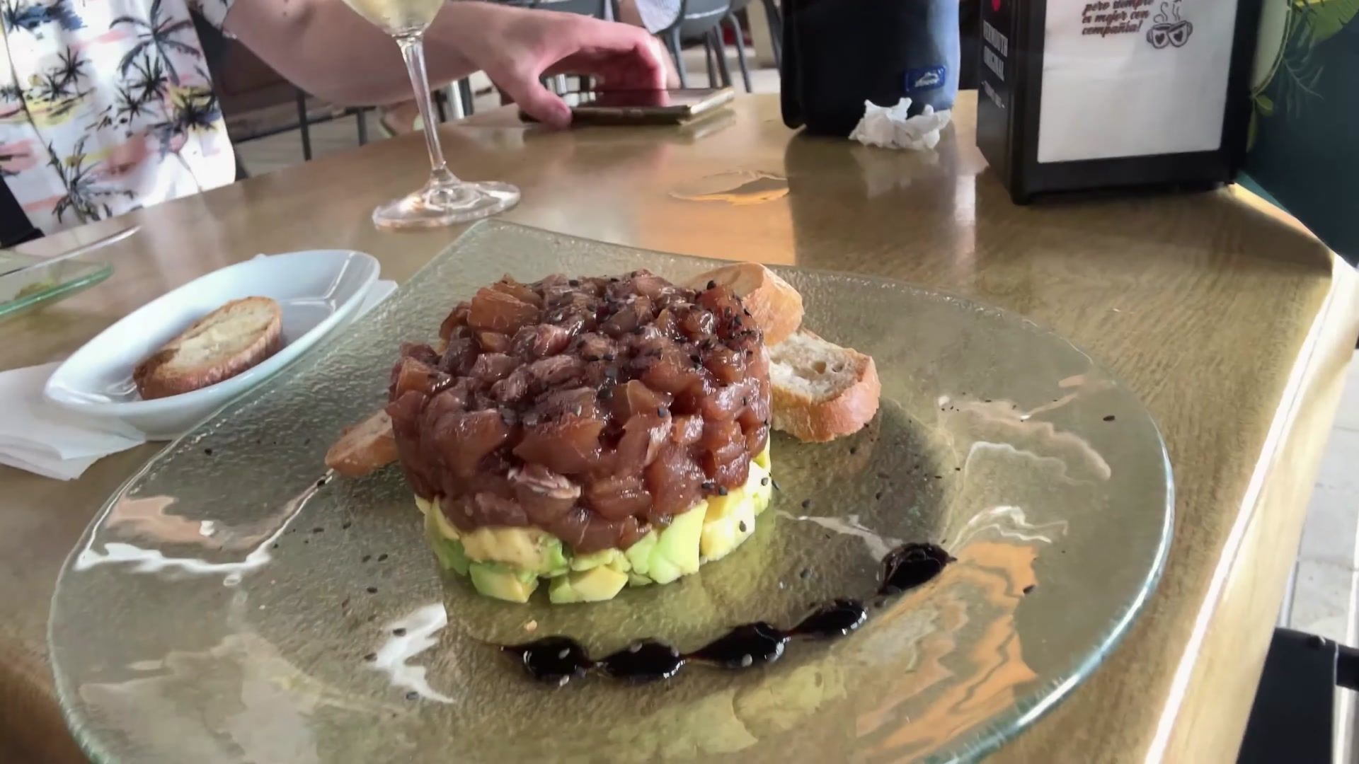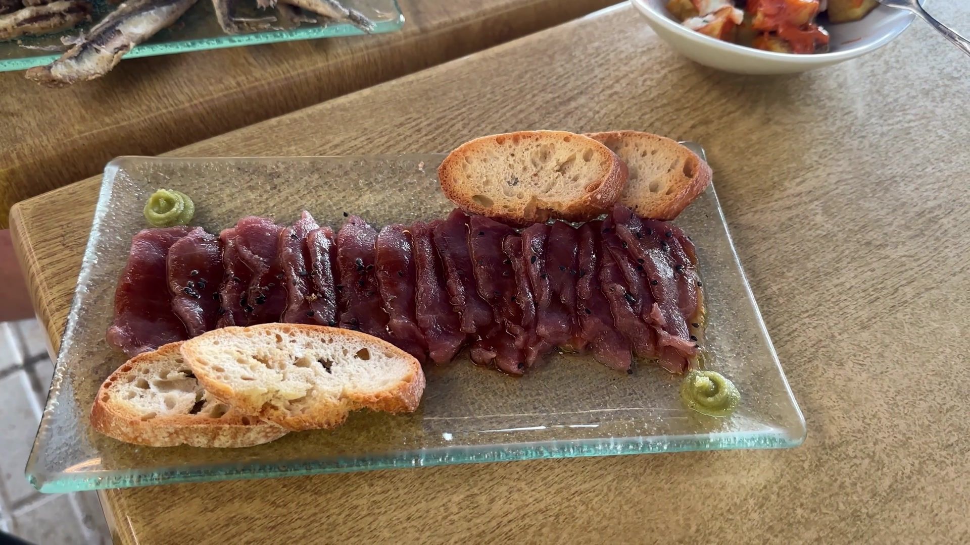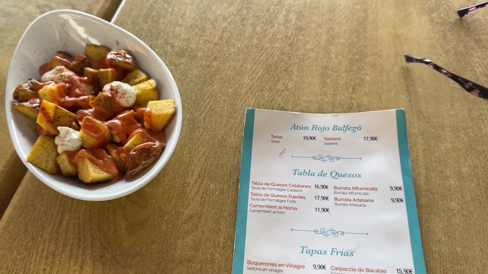 After the tour we set out in search of a restaurant because I was a bit hungry since I didn’t try the tuna during the tasting. This place is 1.5 hours away from Barcelona, a small but very beautiful town. We ordered patatas bravas, tartare and sashimi from the tapas menu. We wanted to try seafood and small local fish.