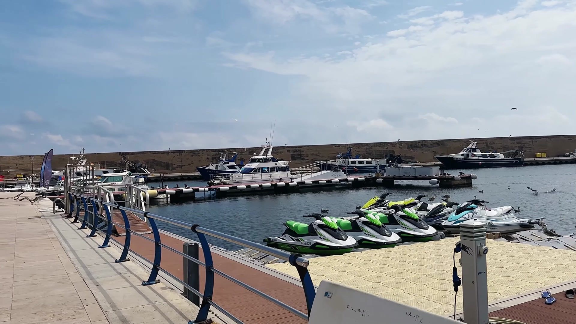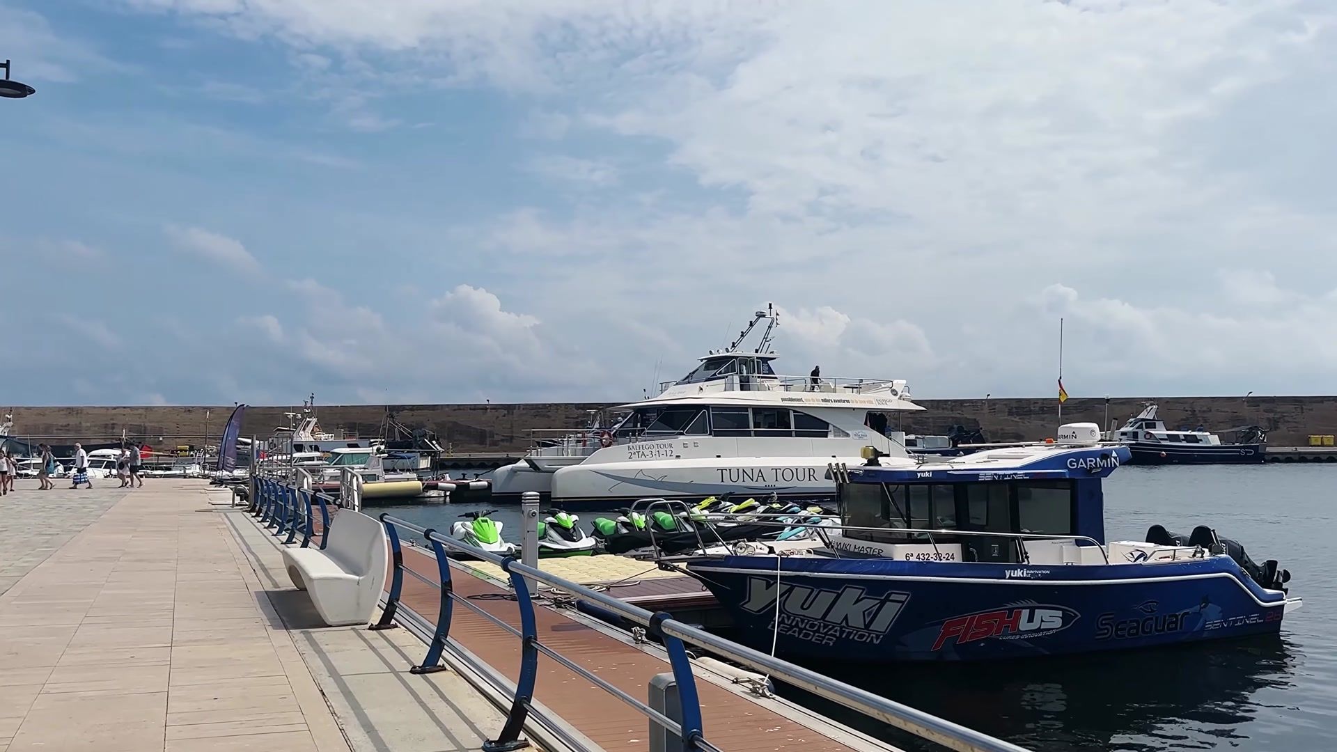 Hello friends. Recently we arrived in a very small and interesting town in Costa Dorada. It’s an old fishing village because there’s an ancient and large anchor here and it’s close to the harbor. We had a special plan for this place. We had decided to go swimming with giant tuna.