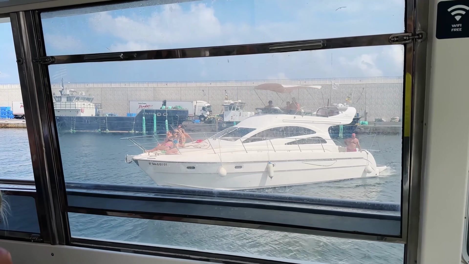 On the catamaran we joined for this sea journey, there were restrooms, showers and changing cabins. We chose to stay on the lower deck, where there were comfortable seats and tables where we could sit easily. This catamaran is very large, with a capacity of up to 70 people. So it could be a great idea for organizing events with a large group. The journey lasts only 2 hours.