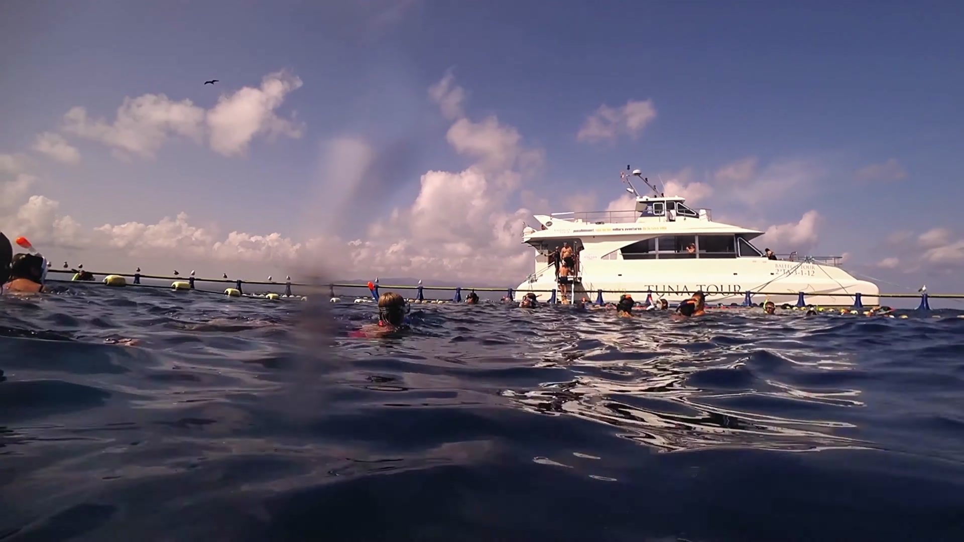 The tour involves taking a catamaran and traveling for 20 minutes to a special farm where the tuna are located. You begin swimming among big waves, taking amazing photos and swimming alongside giant tuna. The tuna are huge, some weighing up to 450 kg and they are quite safe. I recommend wearing a mask while swimming. If you only take the catamaran tour, you won’t be taken into the sea to swim, so I suggest choosing the tour that includes the swimming option as well.