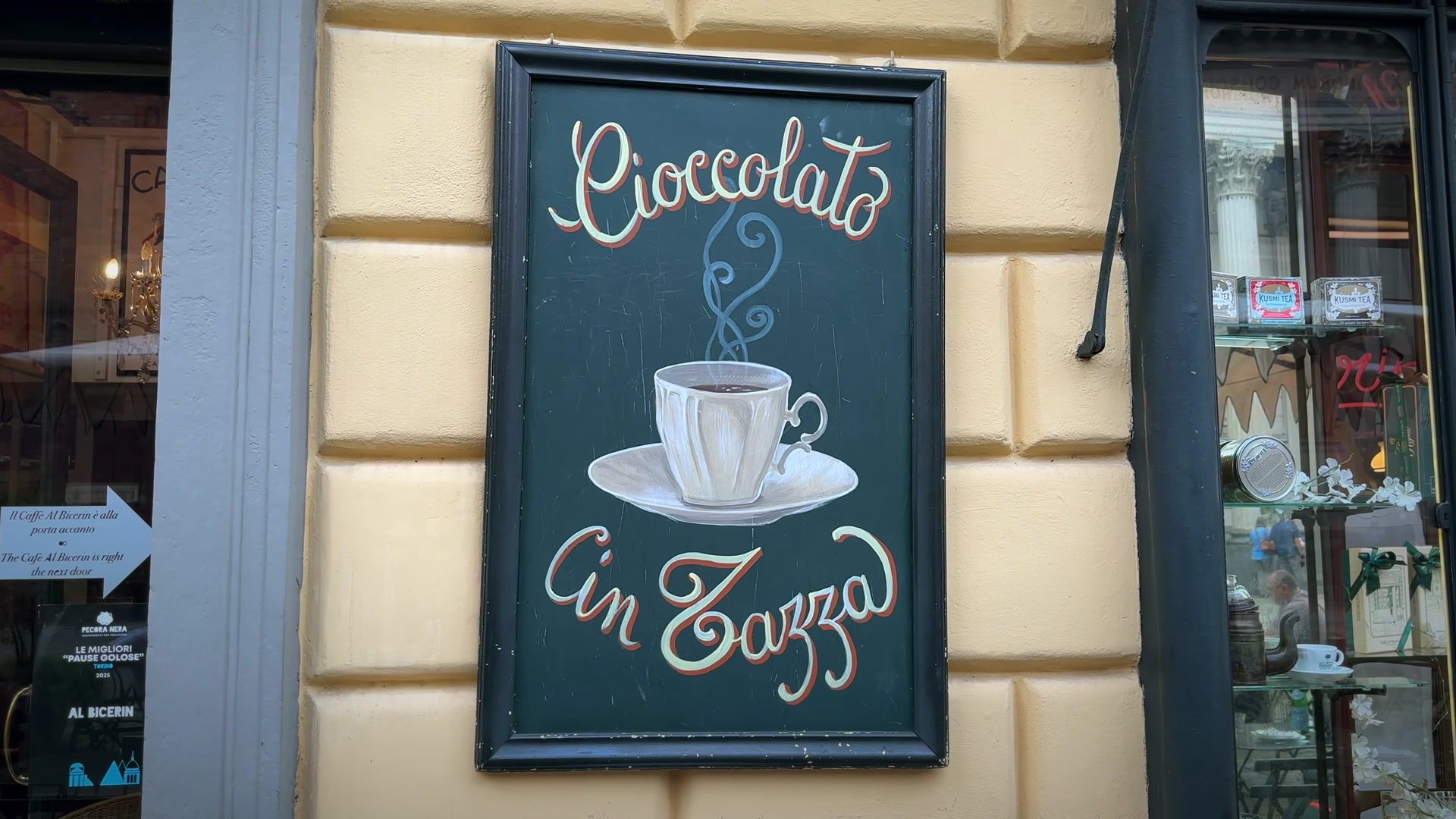One spot you can't miss is Caffè al Bicerin. You have to try the Bicerin drink while you're there.This coffee is a traditional, hot Turin drink consisting of hot chocolate and milk cream. The exact recipe is unknown. It is supposedly kept secret. Most people say that the most delicious Bicerin in the city can be sipped here. They told me not to stir it, just drink it as it comes. I gave it a shot and yeah, it’s definitely something special. It cannot be compared to a latte or a machiato. It is really quite delicious, not too sweet but not too strong either. Those who do not like espresso should not worry. It does not have such a heavy concentration. You’ve gotta do this if you ever visit. The place opened in the eighteenth century, so it’s one of the oldest spots in town. Also a few years back Bicerin became the official drink of the whole region. I’d definitely recommend giving it a try.
