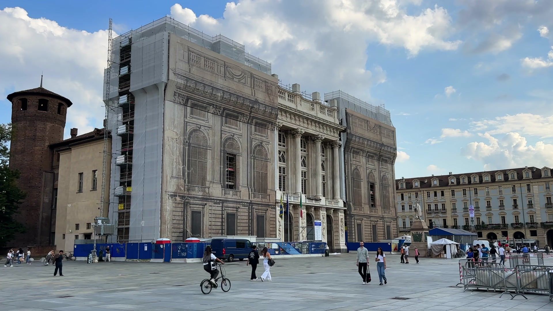 Eventually the Jewish community pulled out, saying This isn't what we agreed to. The money ran out, but the tower was mostly done by then anyway. Many people liked the project. The lower part is Neo classical and the upper part is Neo gotical. The tower is very very beautiful. The municipality took over the remaining financing. When the project was completed, the Risorgimento museum, which tells the story of Italy's unification, was placed here first. Later the Cinema Museum opened inside, which is a very symbolic situation for Turin.
