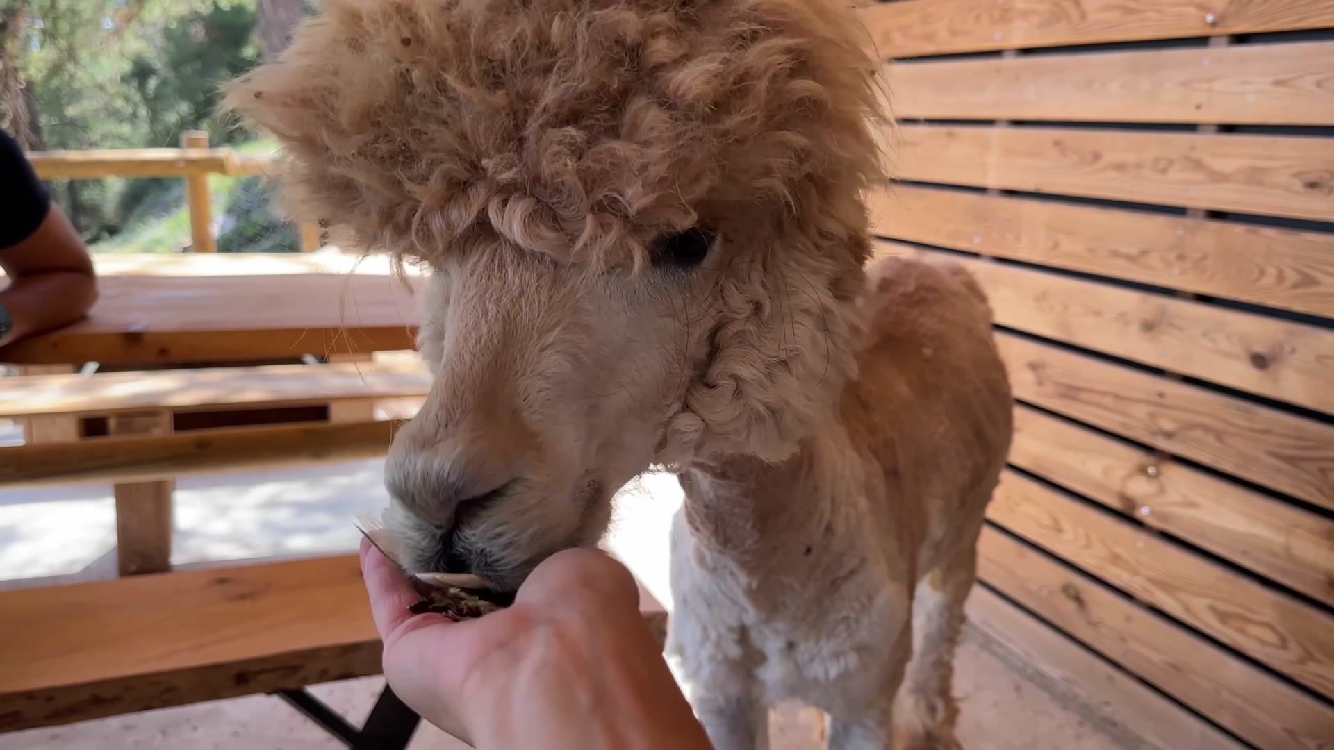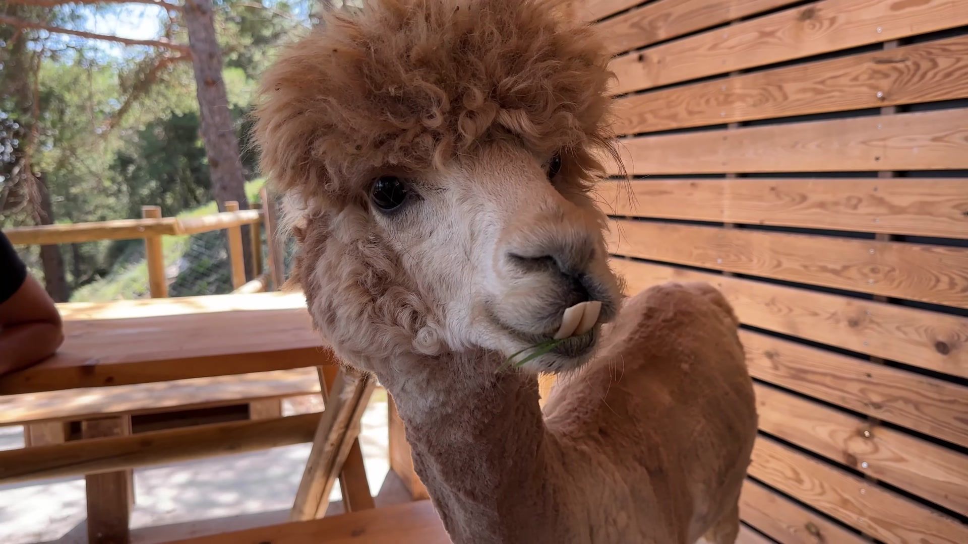 Alpacas look very cute. We had lunch on a beautiful summer terrace with alpacas next to us. There is also a very nice lounge inside where you can sit if the weather is cold or rainy. There are many accessories everywhere.