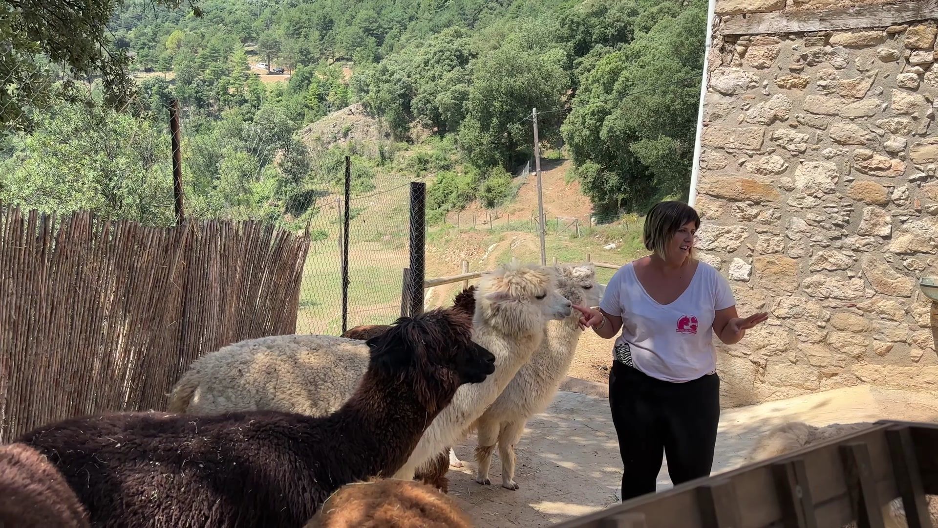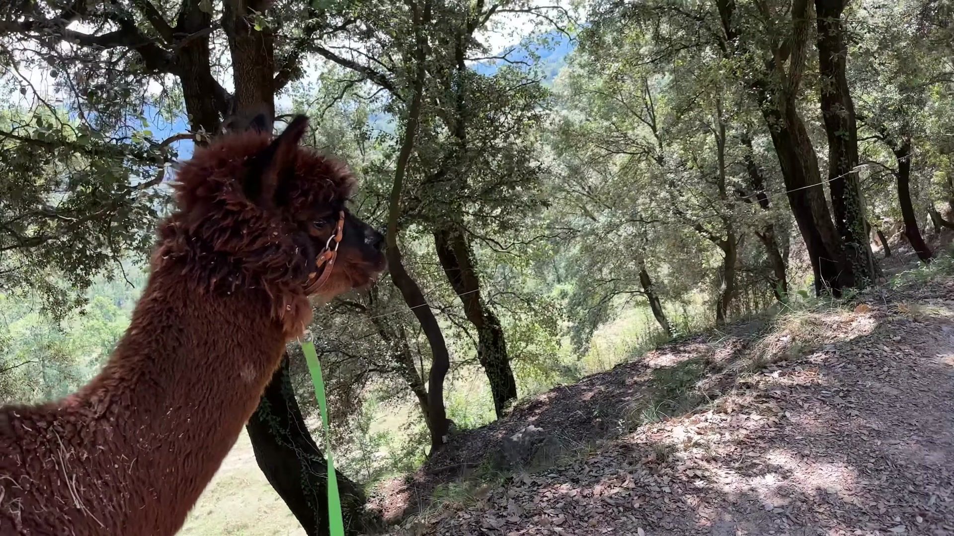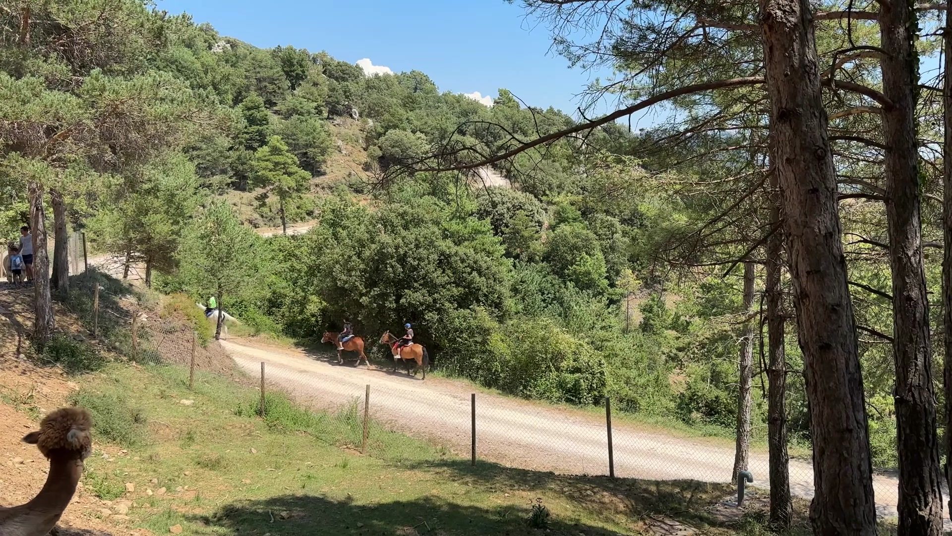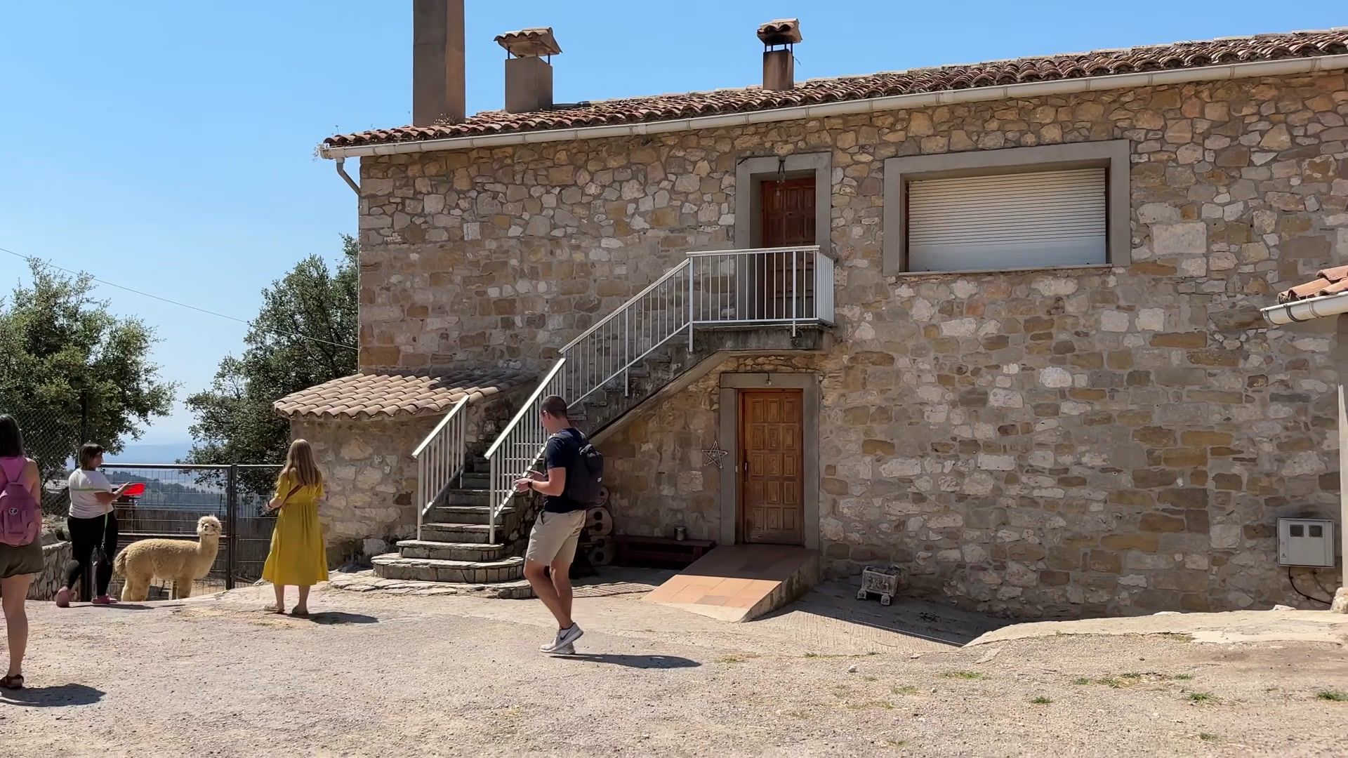 Our walk took place on a beautiful mountain path. It was very hot today, 32 degrees and July is not the best time to visit because of the heat. The farm is only accessible by car, there is no public transport. But you can rent a car in Barcelona, tour Catalonia and see beautiful places.