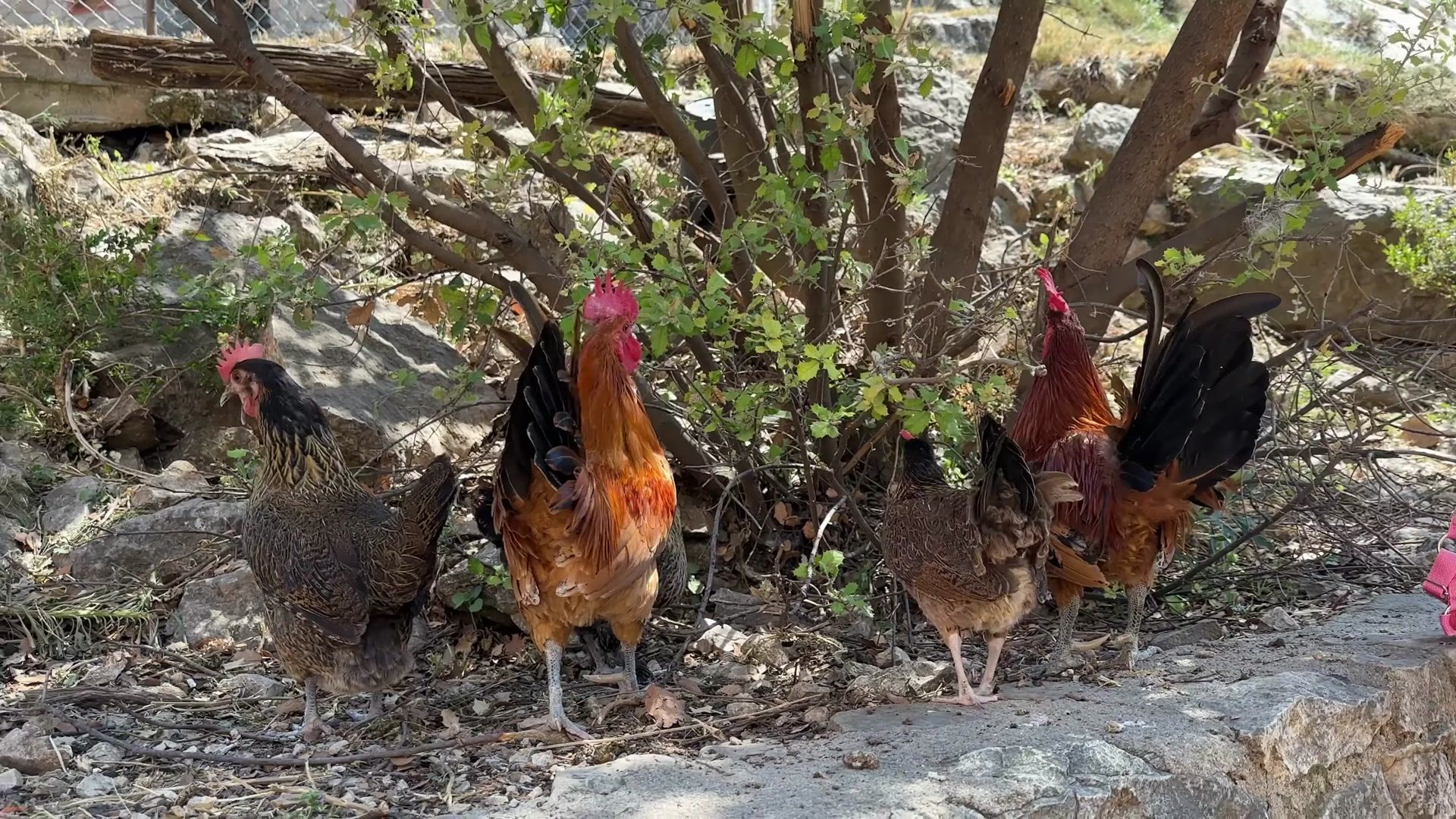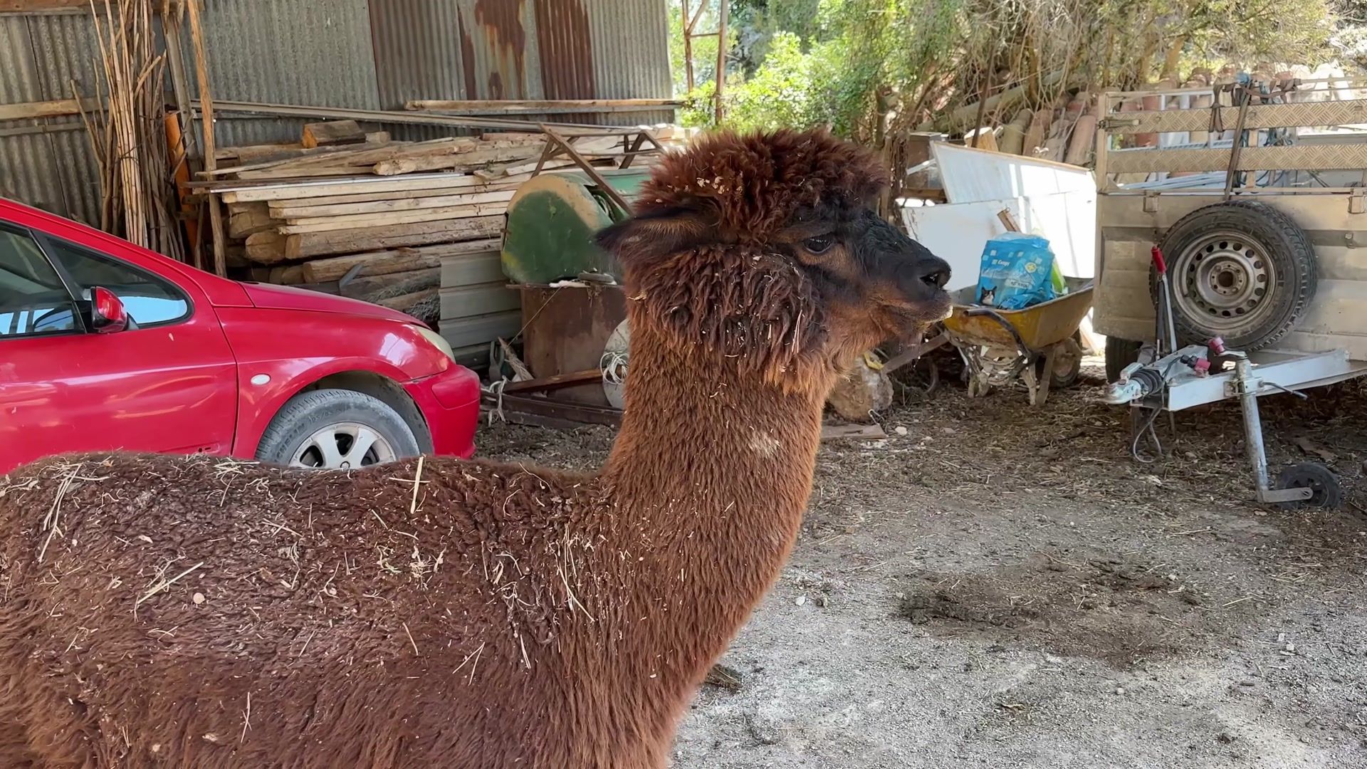 There's also a cow here, complete with a bell. Besides the alpacas there are two llamas living on the farm.Llamas have different ear shapes and facial features and are generally taller. There are also chickens enjoying themselves here.