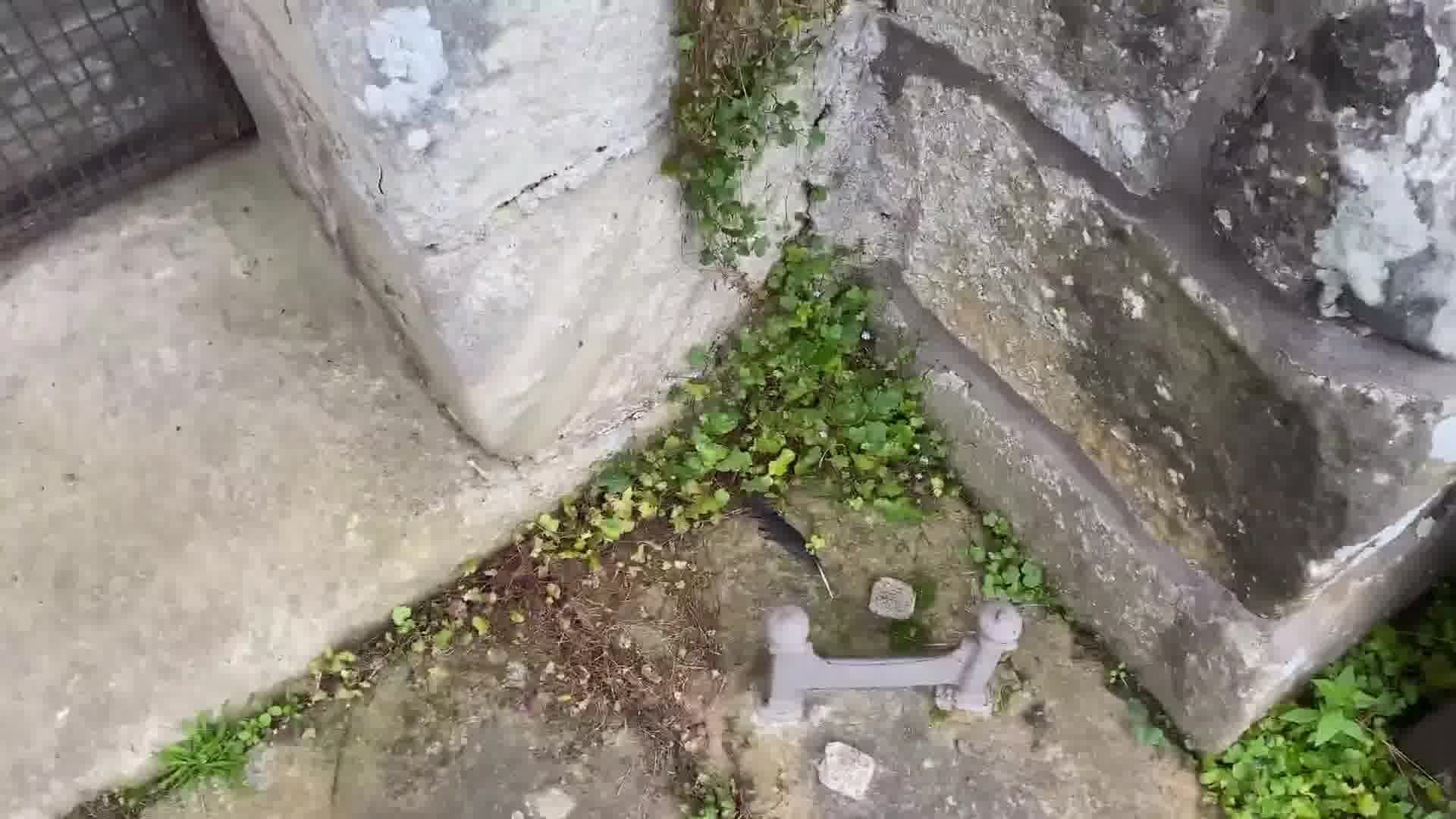 I think there's a baptismal font here, and upwards, a staircase leading to the bell tower. Let me mention something interesting about the graveyard. Why do we keep going to graveyards? It's not for a specific reason, not because we have a particular interest in graveyards and not because there's something mysterious about them. I just believe graveyards reflect real history.