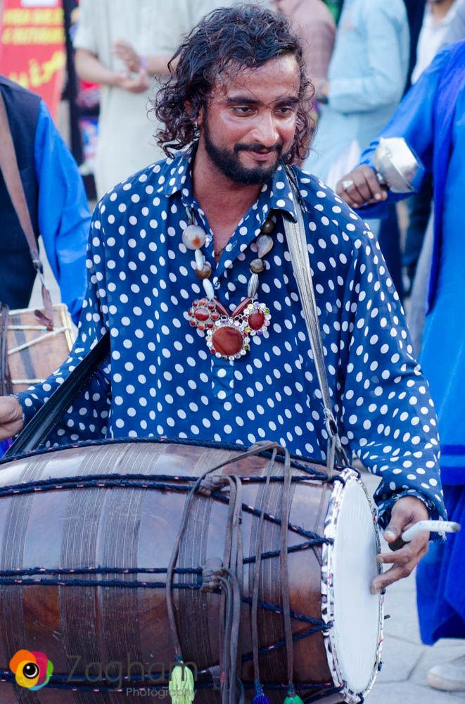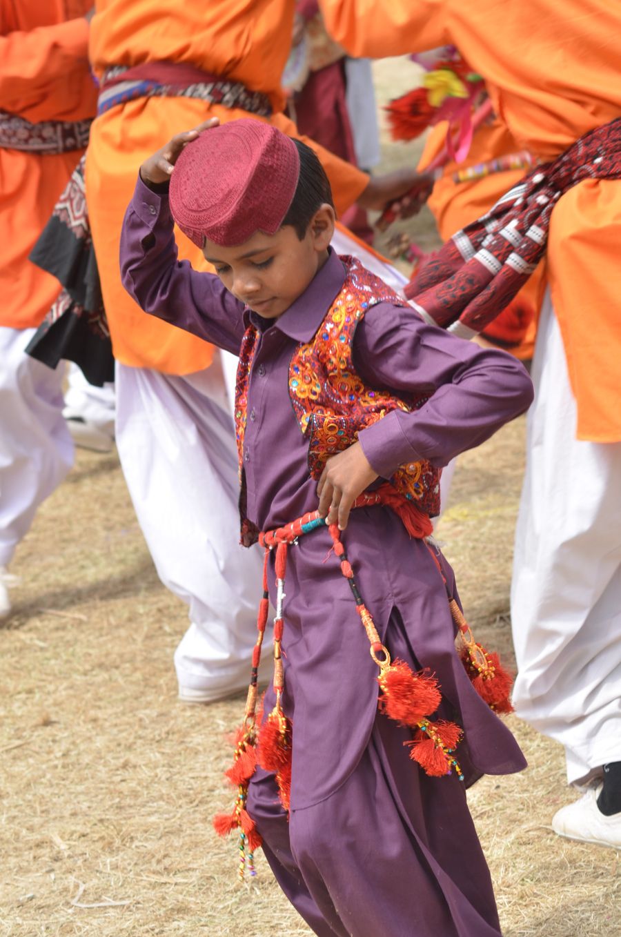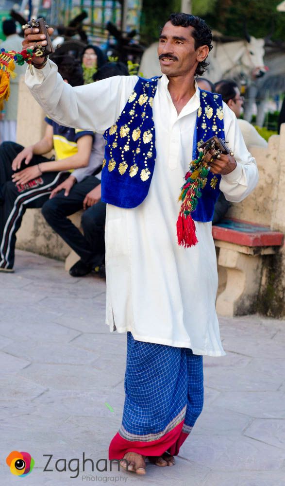 All these folk artists and dancers wear their traditional dresses. You can see the color full artisan work in these dresses. Famous Ajrak work, Sindhi Topi, Punjabi Lungi etc are very visible work you can see.