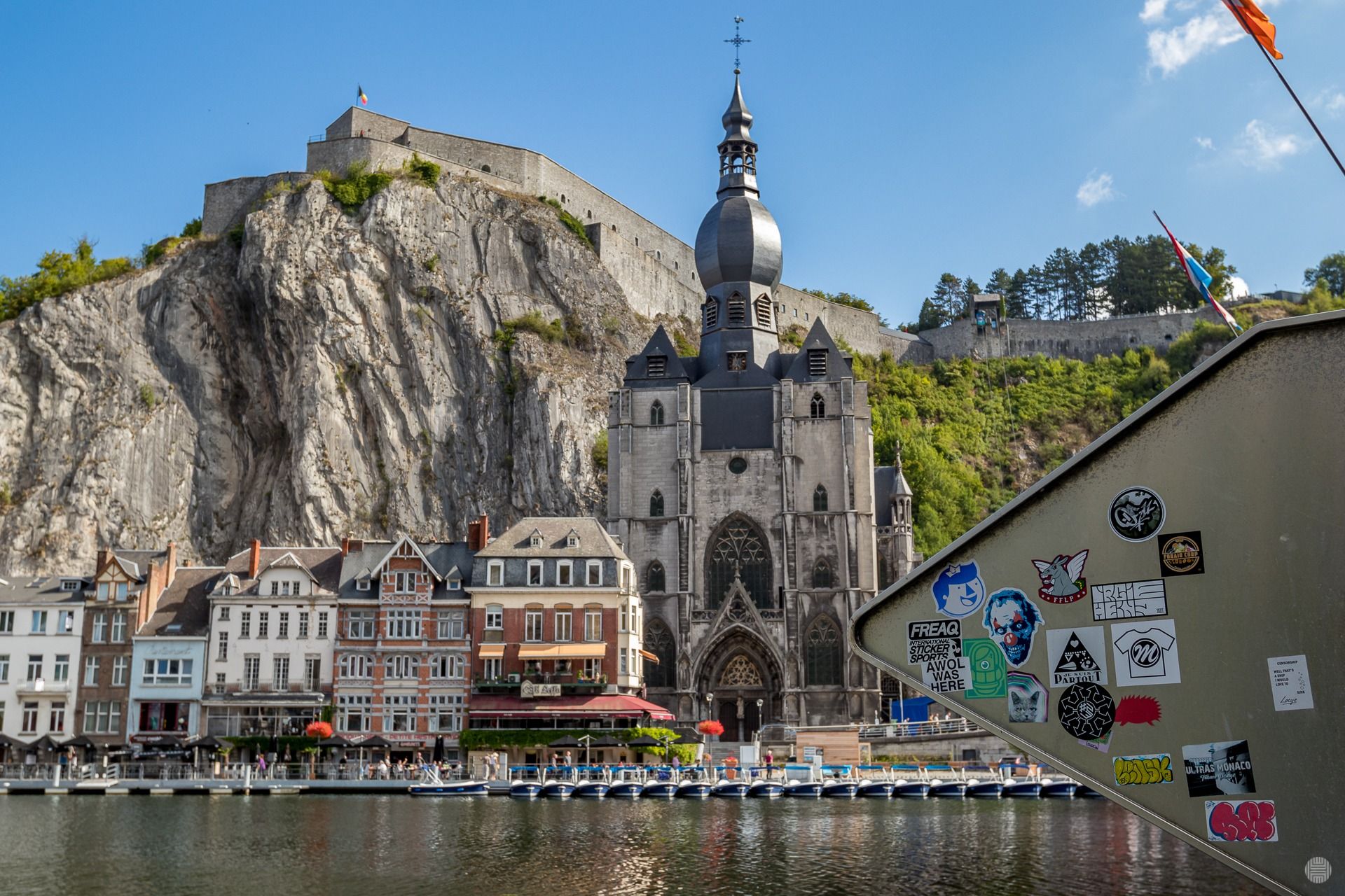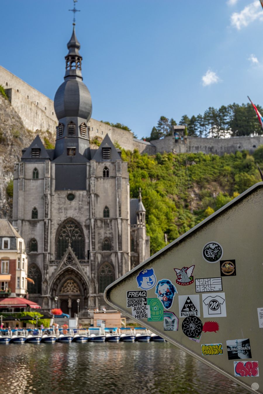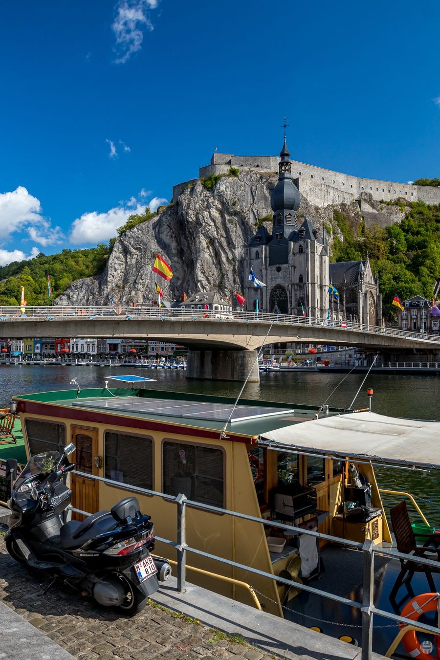 Dinant was one of the planned travel destination from our Belgian photo-trip. I love city built on river banks. They are always beautiful and there is something vital and energizing in the air, living by running water, I can feel that. When we arrived in the warm September morning, the weather was just perfect for long walks and the white puffy clouds were giving me the best light for my travel photos :) We found a great spot to park our rental car near the House of Tourism - a good place to start a tour.