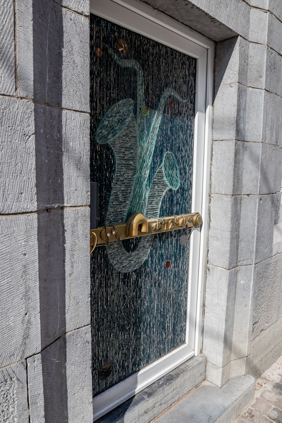Huge "floating" transparent glass saxophone in the middle. Quite impressive.