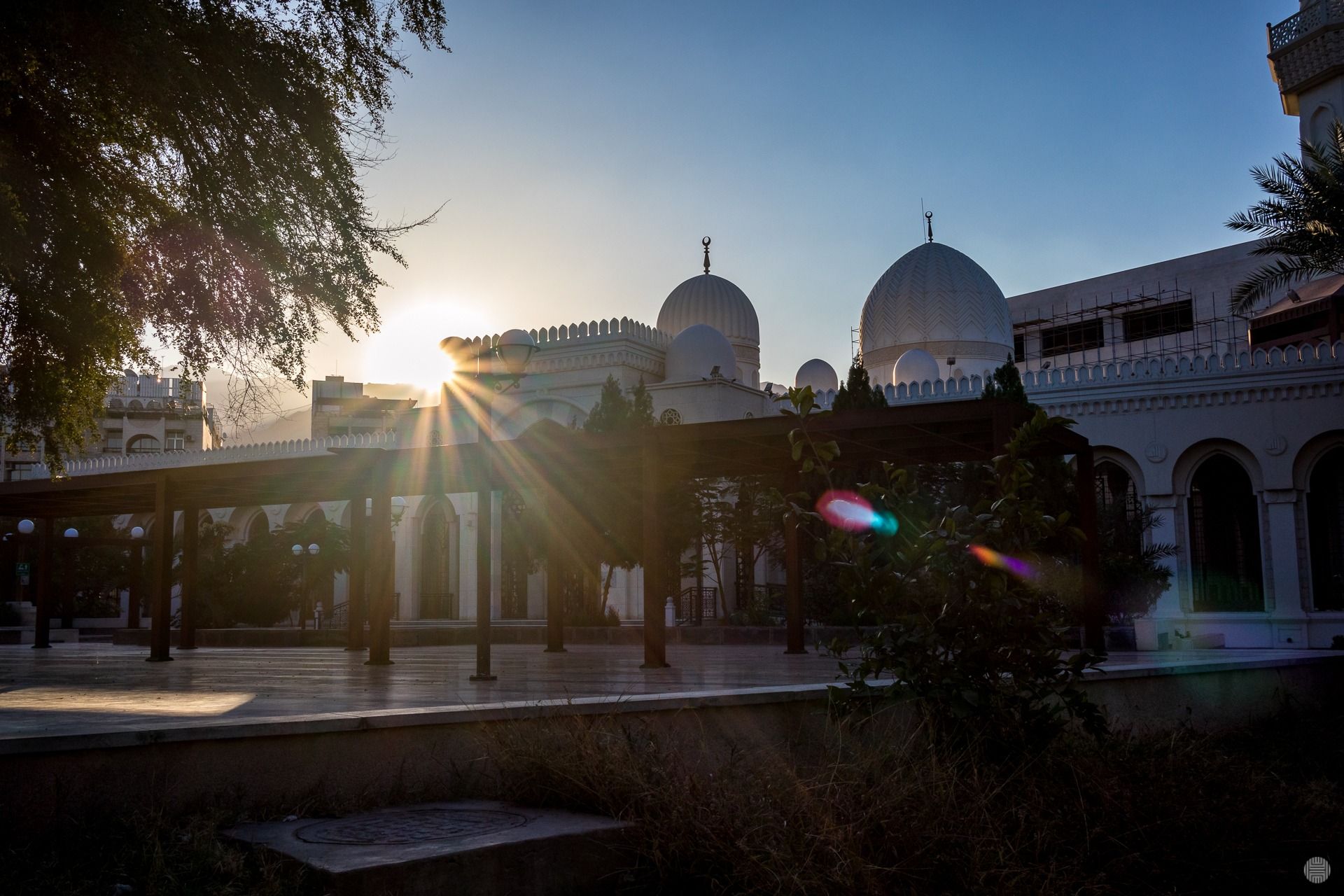 Sun light diffracting beautifully over the nearby mosque: