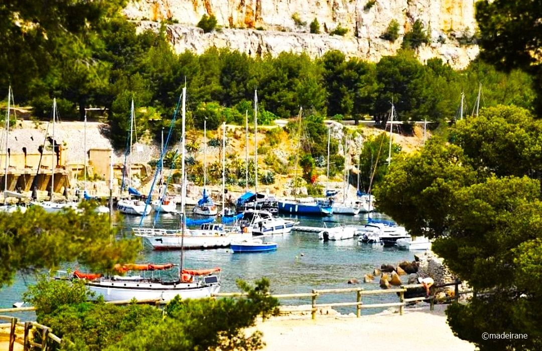 We rushed on a boat to the calanques of Cassis. Calanques are small, picturesque, secluded coves in the rocks, surrounded by pine trees and other vegetation. You cannot approach them by car, only from the sea or on foot through the windy mountains.I will write a separate post about calanquess.