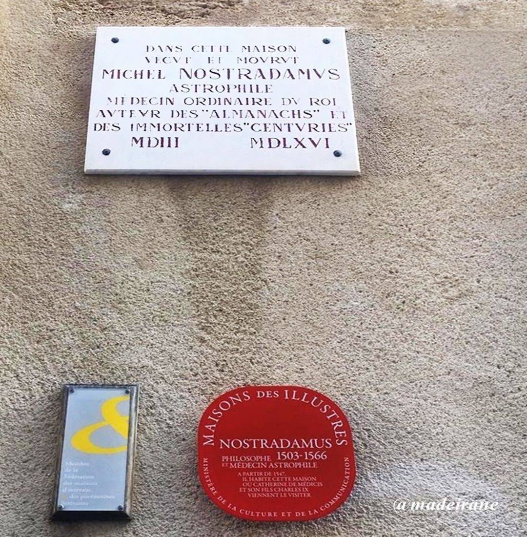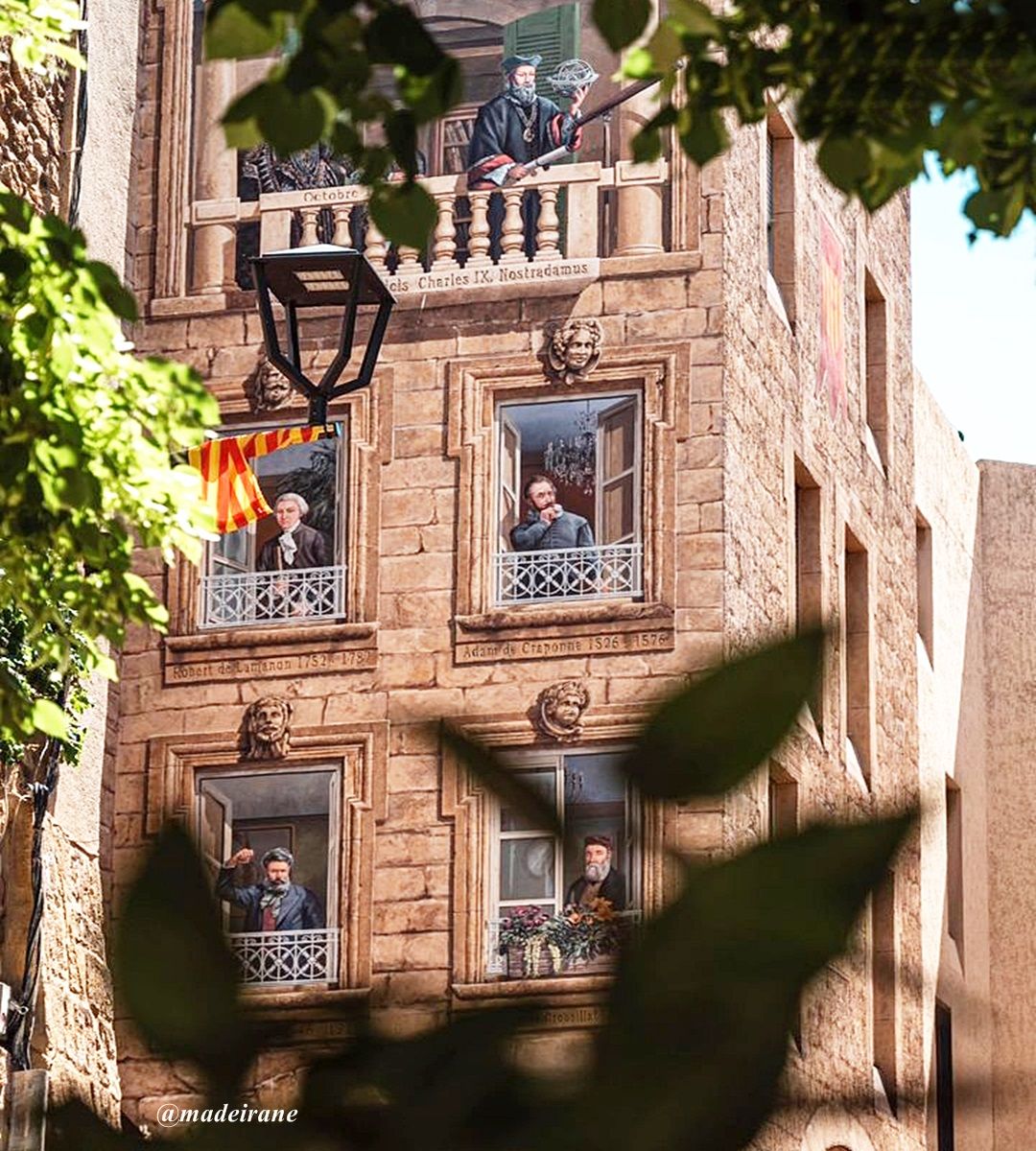 Nuo Laikrodžių gatvėje esančio namo, kurio pirmame aukšte įsikūrusi drabužių parduotuvė, sienos į turistus žvelgia Nostradamo veidas. Ši didžiulė freska atsirado praėjusio amžiaus 80-aisiais metais.