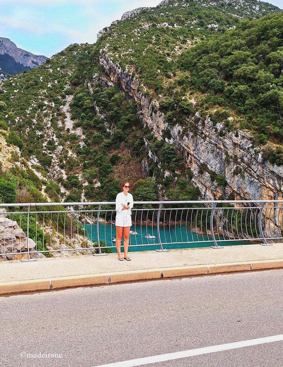 To explore the Verdon Gorge, we could choose two routes: along the northern shore and along the southern side. The most beautiful route is the southern one. Along this road, there are picturesque shores, trees, mountains, but during the tourist season, the shores are covered with dense vegetation and exploring the gorge is difficult. It is recommended to choose the northern route in summer. There are also hiking routes to explore the 15 km long canyon. We chose the northern route. We left the hotel and, after about 15 minutes, crossed the Pont du Caletas Gordes du Verdon bridge.