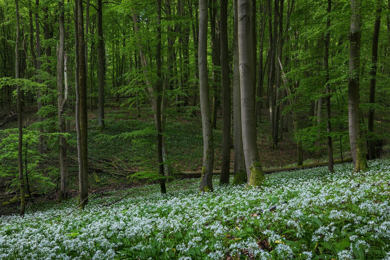 May is usually the time when you can find carpets of wild garlic in many of the German forests. The biggest carpets can be found in the Hainich National Park.