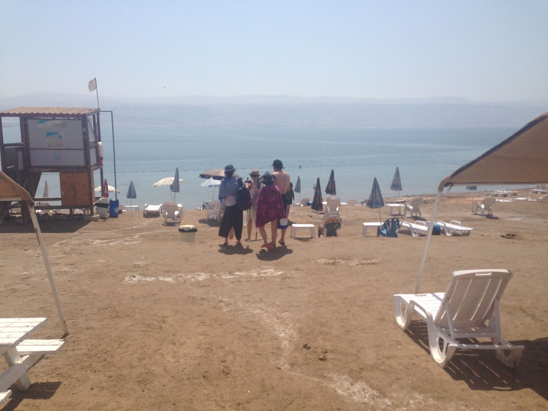 When we arrived at the Dead Sea, the guide gently explained how to go into the Dead Sea. I thought it was a bit funny how come he had to explain how to go into the Sea. Well, he was right! I mean the Dead Sea is not a regular sea! As you may know already, the level of salt concentration is very high in the Dead Sea, so you feel some pain if you have any scratches on your body. I had some insects bites when I got into the Dead Sea, so I remember that it was very painful! Also, the taste of water is like "poison"! I mean it was extremely salty, and I tasted it was even bitter, but not salty anymore. 😄 Well, of course, do not splash the water to others! If you get the water in your eyes, then you immediately go out of the water, and clean with fresh water!!