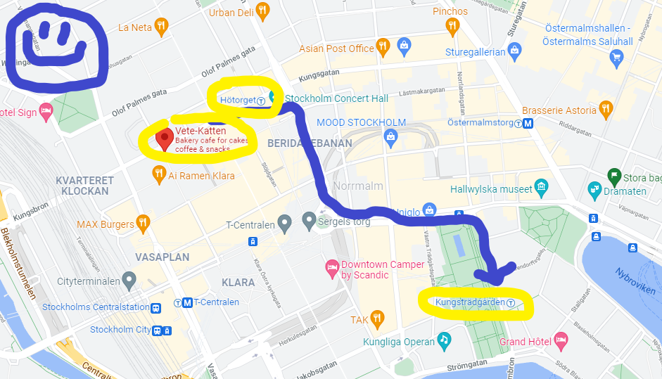 This is a rough map of where I visited Stockholm. (Sorry, super rough! lol!)